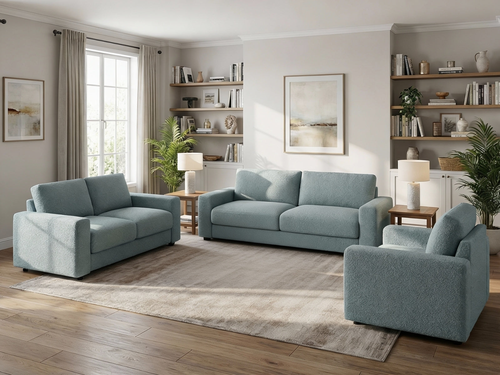 3-Piece Sofa Set | Grey Blue Chenille | Spacious & Stylish