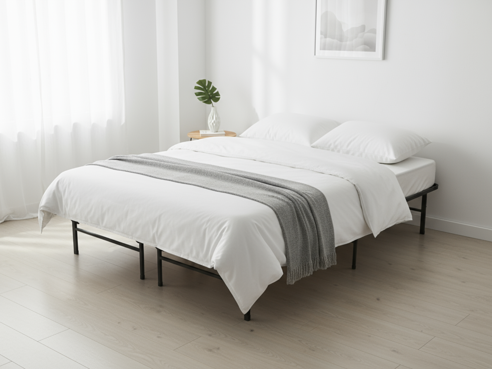 Foldable Bed Frame | Black Finish | Strong Metal Bed