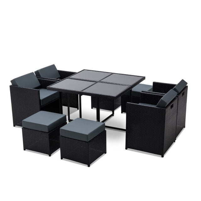 Transform your outdoor space with the Genoa 9-Piece Aluminium Outdoor Dining Set. Designed for comfort and durability, it features a UV-resistant PE wicker finish and a heavy-duty aluminium frame. The 5mm tempered glass tabletop adds a modern touch. 10cm-thick high-density foam cushions ensure ultimate relaxation. Each cushion cover is removable, washable, and water repellent. This set also includes three interchangeable cover colours — beige, grey, and red. It's offering a stylish, versatile setup for any outdoor occasion. Get ready for the coming Spring and Summer! Purchase them now and get it delivered to your doorstep!