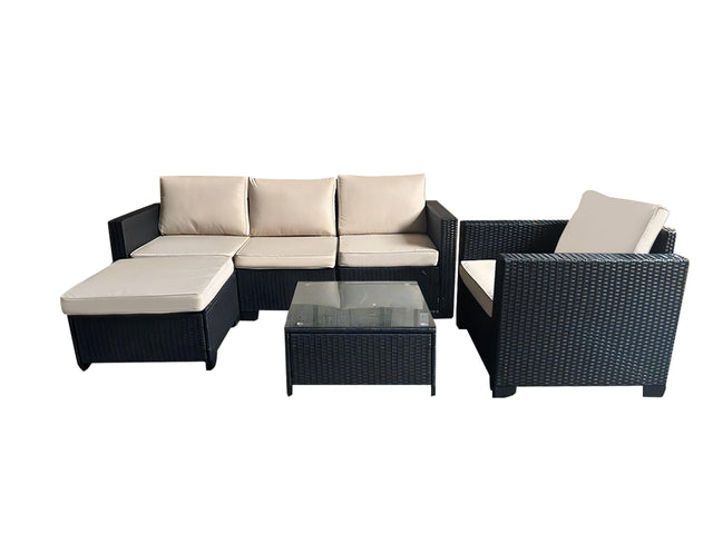 It's time to give your backyard a complete makeover with our stylish yet affordable hand-weaved PE wicker outdoor Sofa Set. Our outdoor set promises luxurious and spacious comfort matched with long-term durability and robust use in any weather condition. With its PE wicker handiwork and heavy-duty steel frame, the stylish outdoor set is made to last. The removable cushion cover is easy to clean. The table also comes with a 5 mm-thick tempered glass top for safety, which adds a handy convenience. Not least, the entire set can be easily configured to any arrangement that appeals to you.