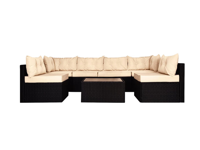 Add elegance and comfort to your outdoor space with the Shelby 5PC Outdoor Set. The set features a sturdy steel frame wrapped in durable wicker that resists rust and outdoor elements. The cushions on each seat provide maximum comfort with a zipper for easy cleaning and replacement. With easy assembly and multiple configurations available, you can customize the set according to your needs. Simple and premium tone is perfect for decorating your patio, porch, deck, sunroom, and other outdoor spaces.