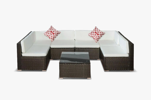 Brighten your backyard with the Warren 7 pc Outdoor Sofa Set and make the outside of your home just as inviting as the inside. Our outdoor sofa set is modern, trendy and provides the user versatility by way of the unique reconfigurable design. Mix and match to create the perfect seating arrangement for your outdoor space. Decorative, functional and durable this set creates an inviting space you and your family can enjoy for years to come year after year.