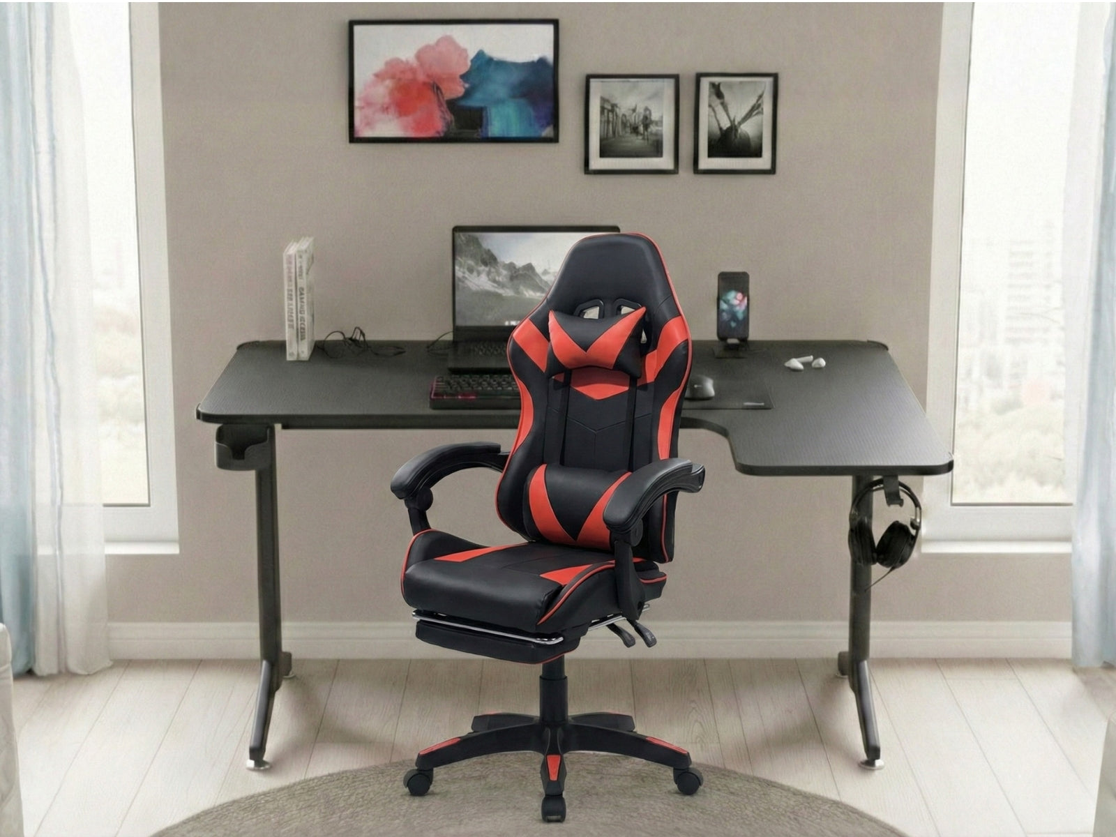 Gaming Table L2R Right 160CM & Nicola Gaming chair PVC Black+Red