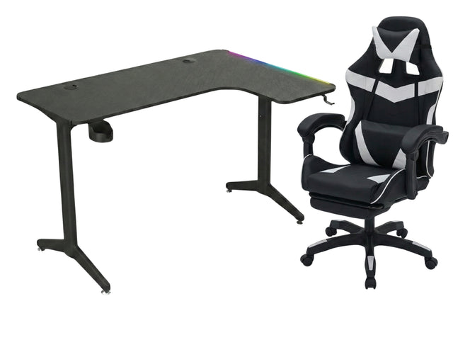 Gaming Table L2R Right 160CM & Nicola Gaming chair PVC Black+White