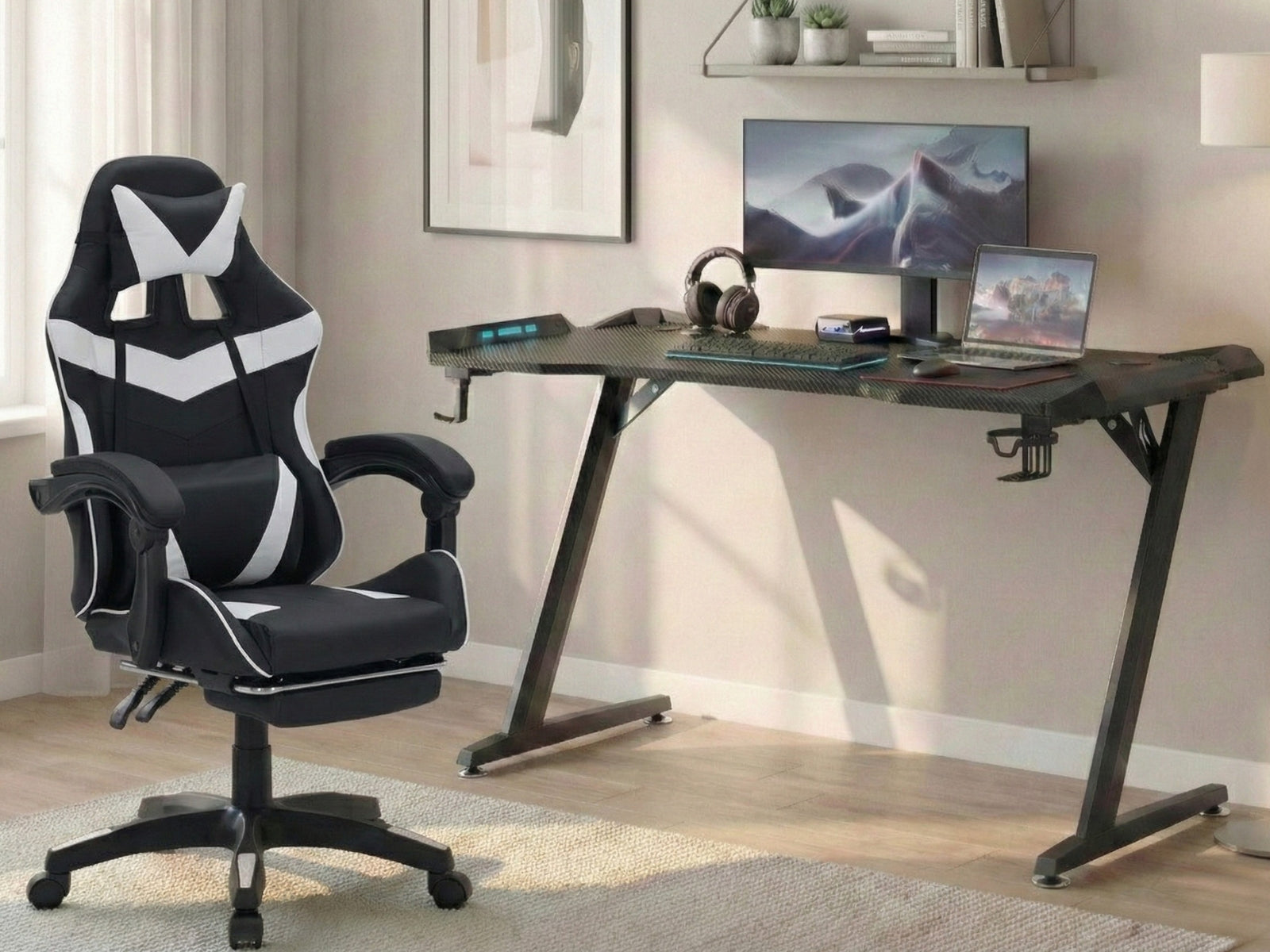 Gaming Table Z9 140cm & Faron Gaming Chair PVC White