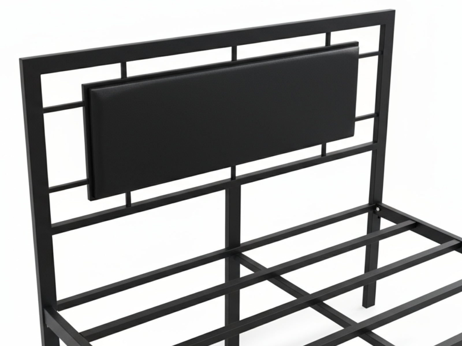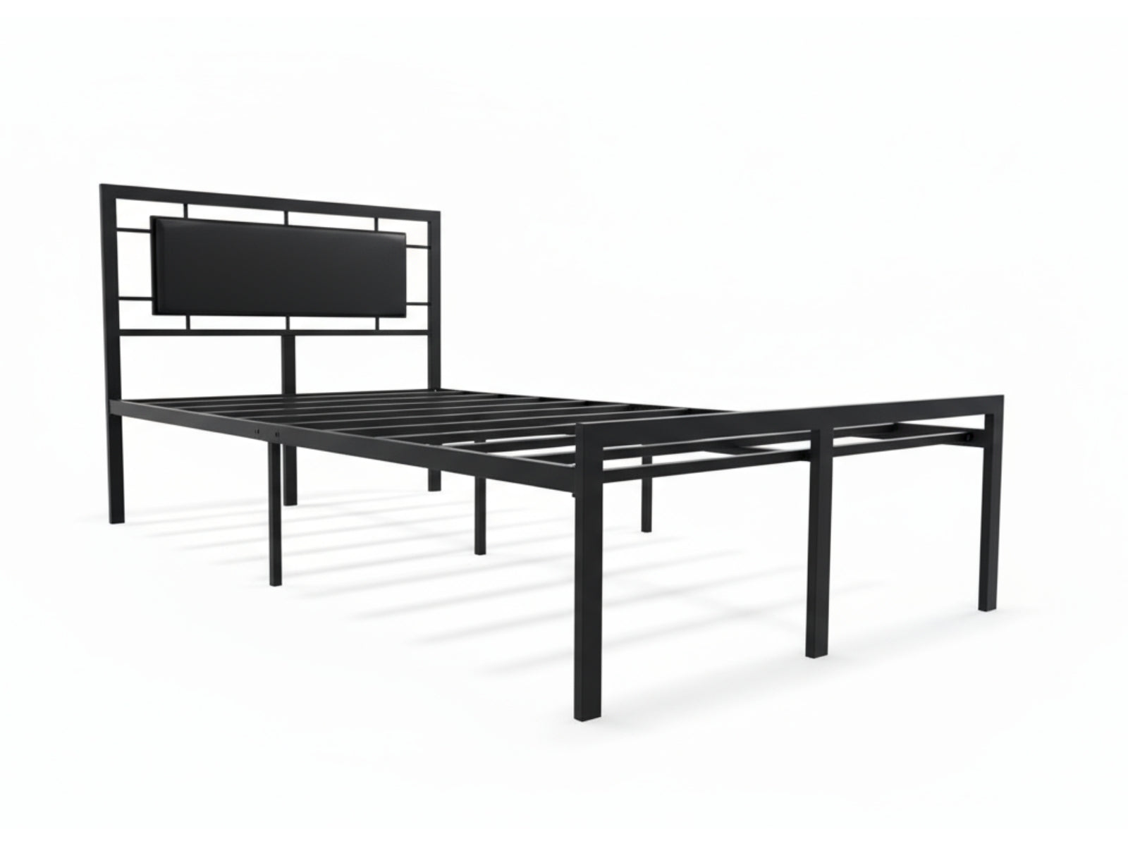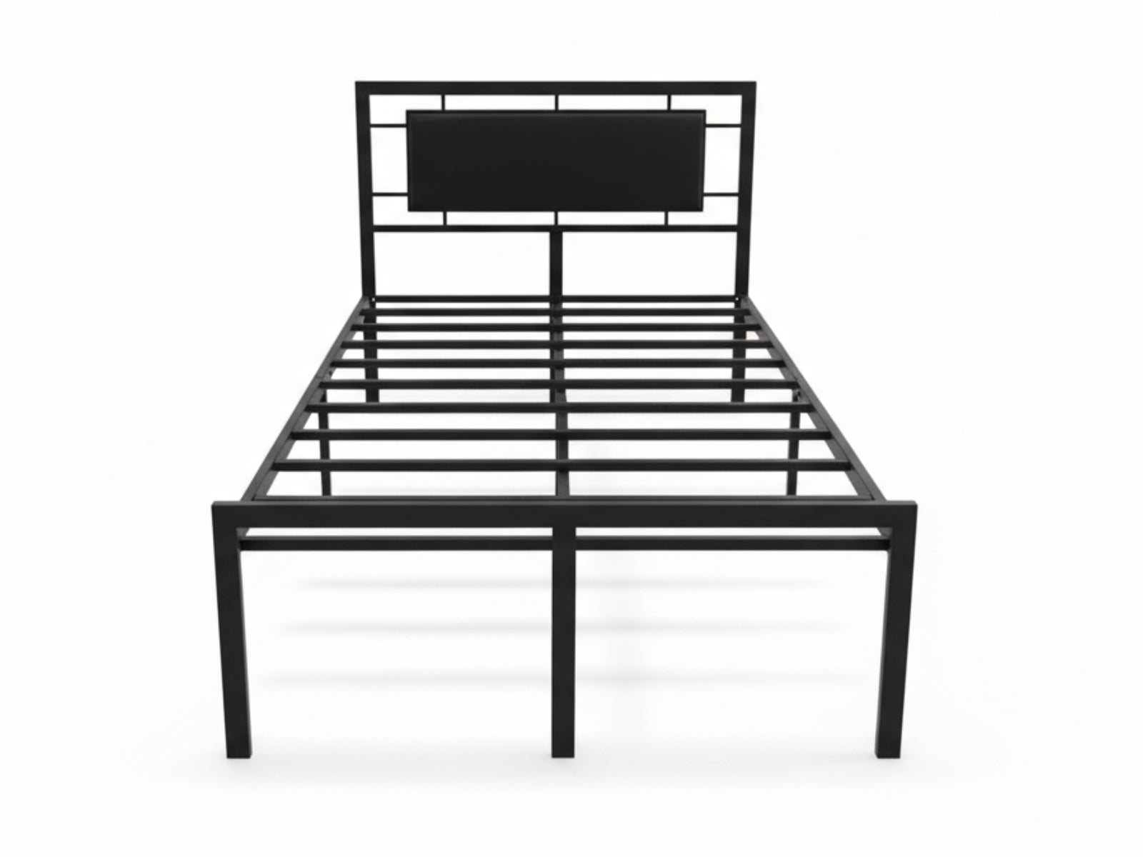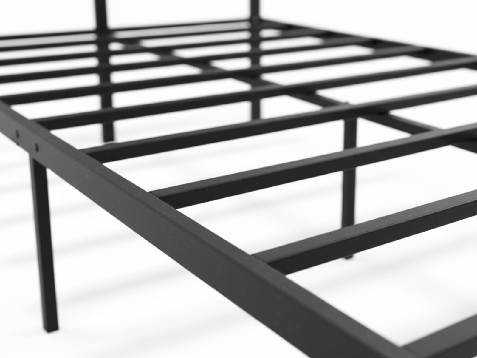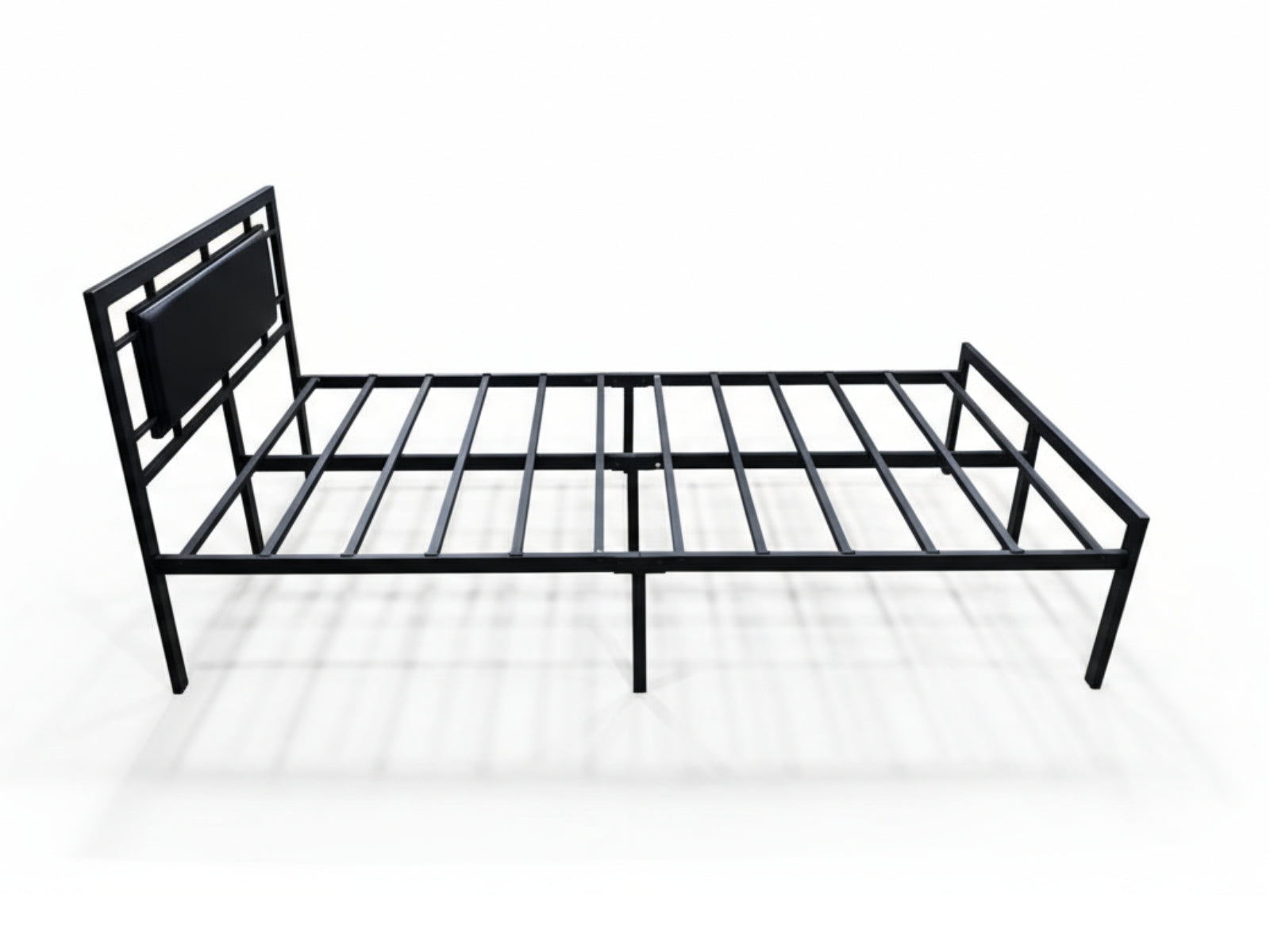 Sturdy metal slat base supports the mattress evenly