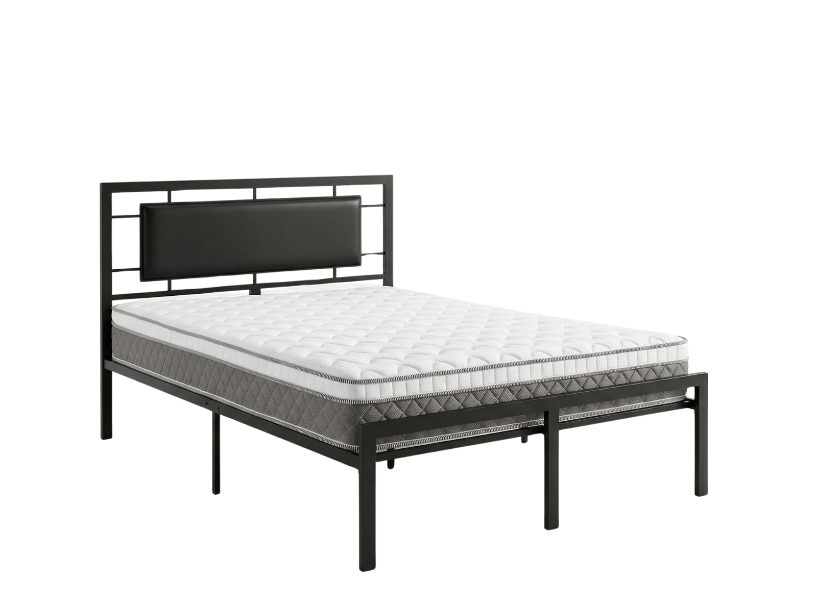 King Single Bed Frame & Mattress Combo | Black Metal & PU Headboard | Vintage Design | 23 cm Thick Mattress | Medium Firm | Memory Foam & Pocket Springs
