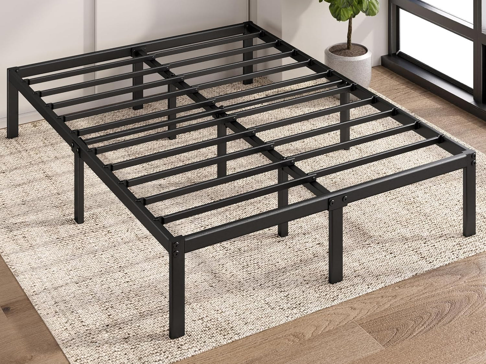 This Metal Platform Bed Frame D is made from metal, providing sturdy support and eliminating the need for a box spring. The 30CM platform height allows for even more under-bed storage, making it ideal for maximizing your living space. The black finish adds a modern aesthetic to any room. Designed for easy assembly is perfect for any bedroom.