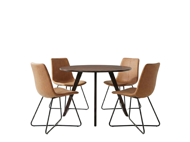 Hexa Round Dining Table Wenge - 100 cm & Walnut Bonded Leather Dining Chair - Set of 4 (Combo)