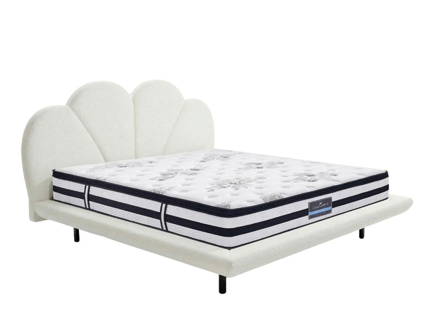 Joleen Boucle Bed Frame Cream & K34 Mattress - Queen