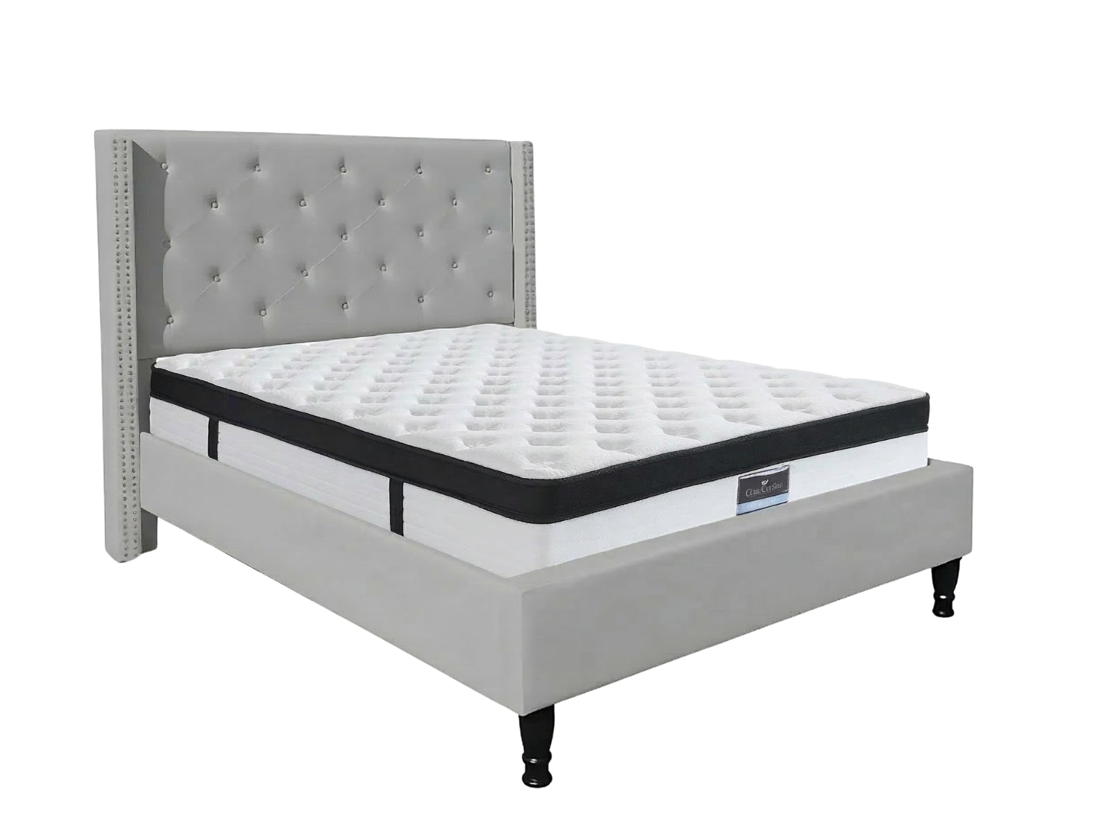 Double Bed Frame & Mattress Combo | Grey Linen | High Tufted Headboard | 31 cm Thick Mattress | Medium Firm | Pocket Springs & Comfort