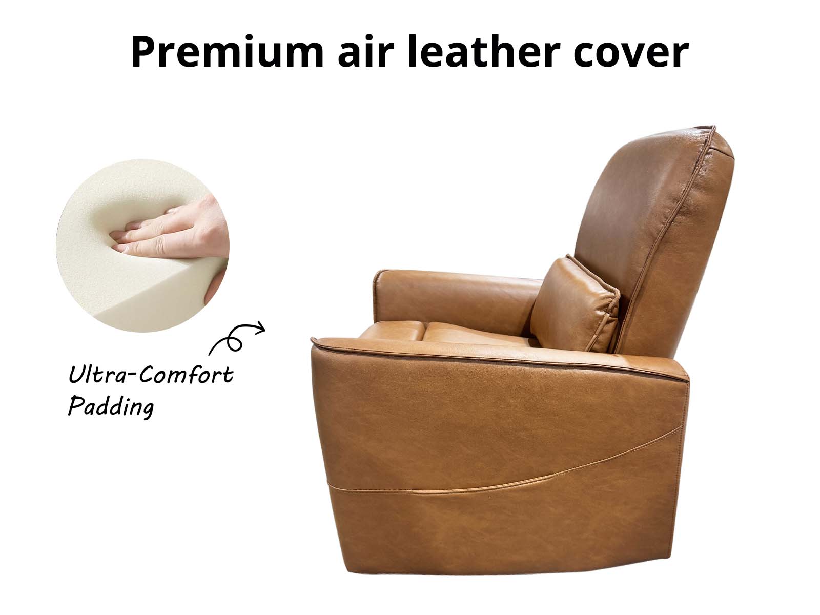 Take a seat and recline in seconds in this smooth and stylish manual recliner chair. Thick sponge padding and lightweight premium faux air leather ensure long-lasting top-notch relaxation. Sink Into luxury overstuffed cushions with high-density foam offer cloud-like comfort, making it ideal for recliner chairs in the living room or bedroom. Whether you're relaxing after work, watching a movie, or taking a nap, this recliner chair ensures every moment feels like home.