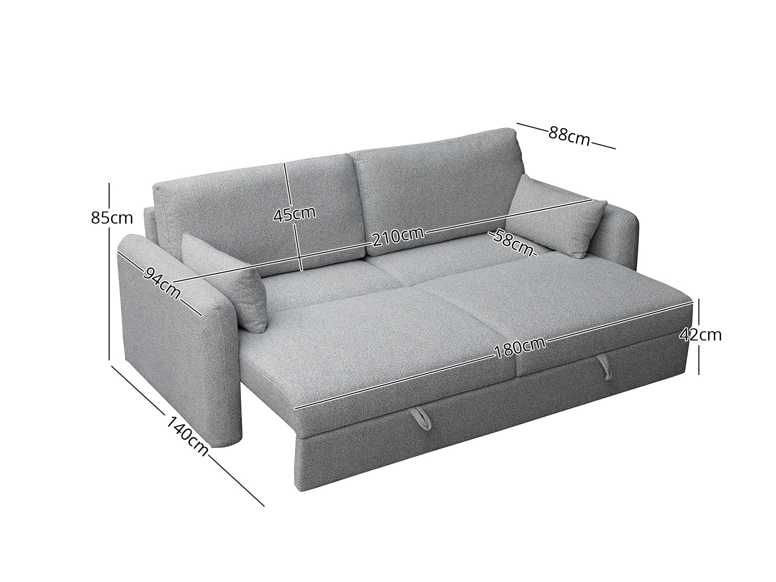 Sofa bed size: 210 x 140 x 85cm