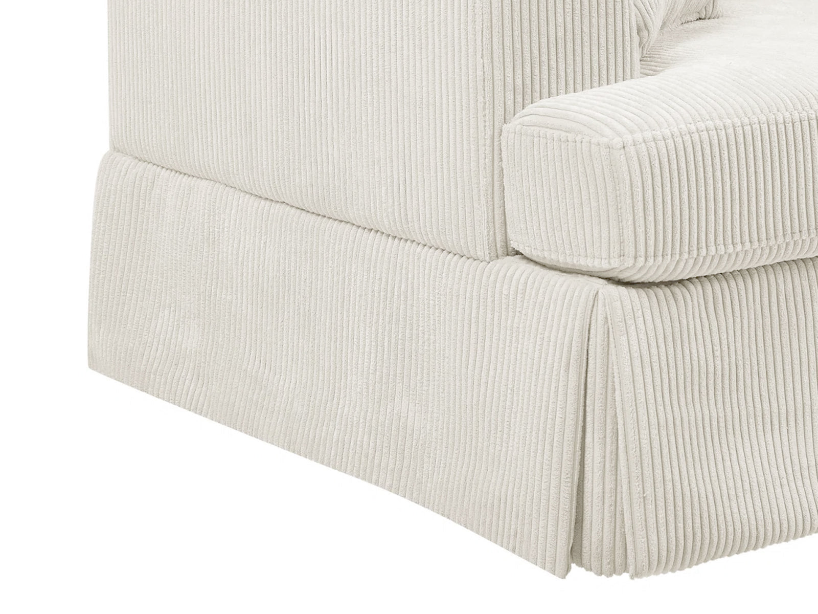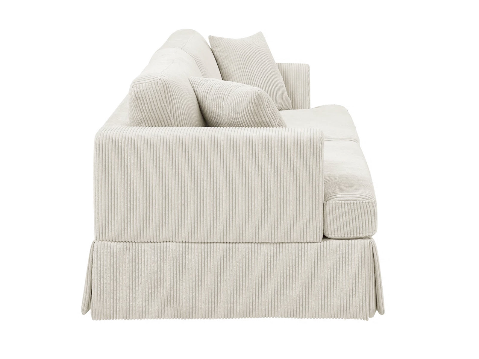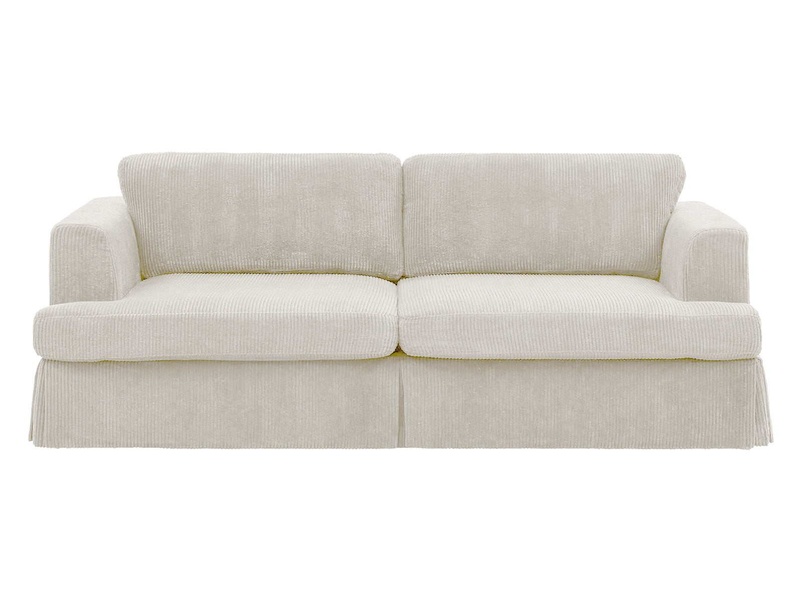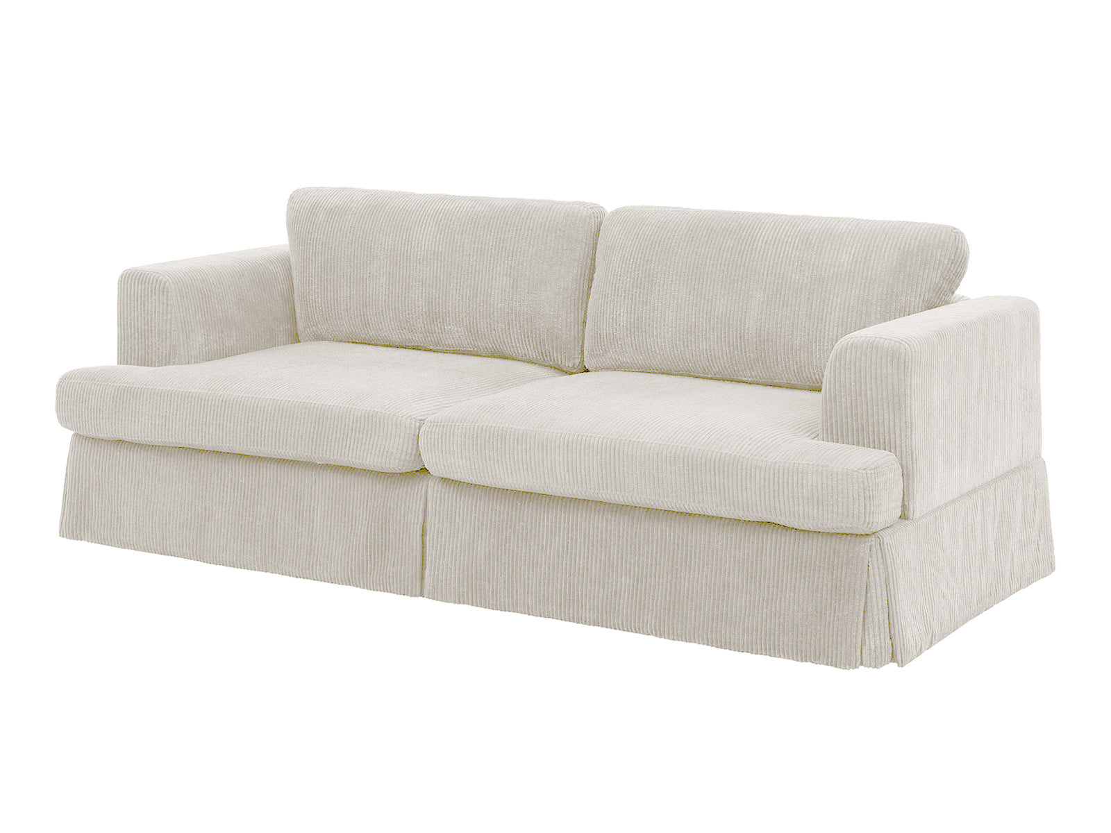 This slip-covered sofa has a plush design that seats up to three people, so it's a cozy gathering spot to entertain friends. Its streamlined frame is crafted with an engineered wood frame on plastic legs, and it's wrapped in padded corduroy material for a tactile look and feel in your modern living room. The foam- and polyester-filled cushions support you as you relax, and they're removable, so it's easy to vacuum.