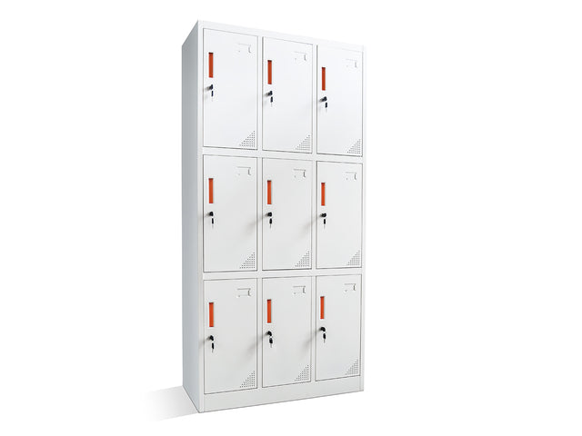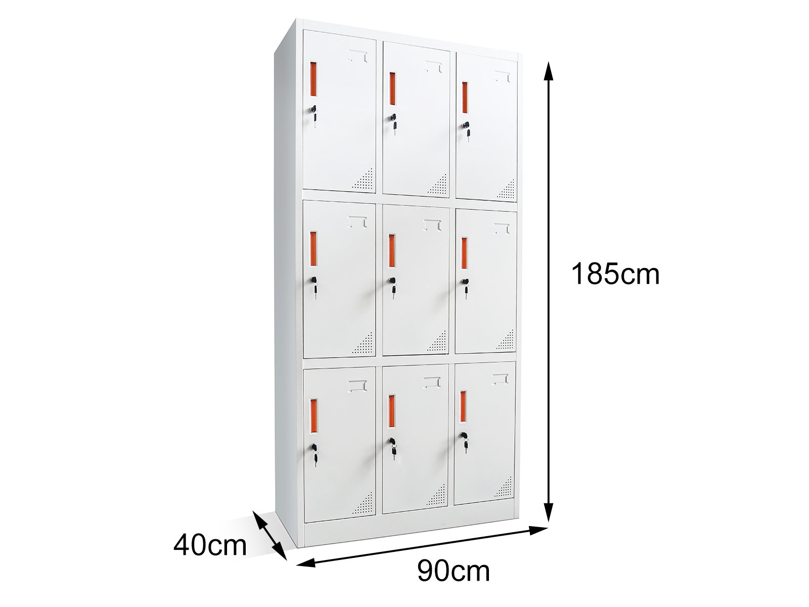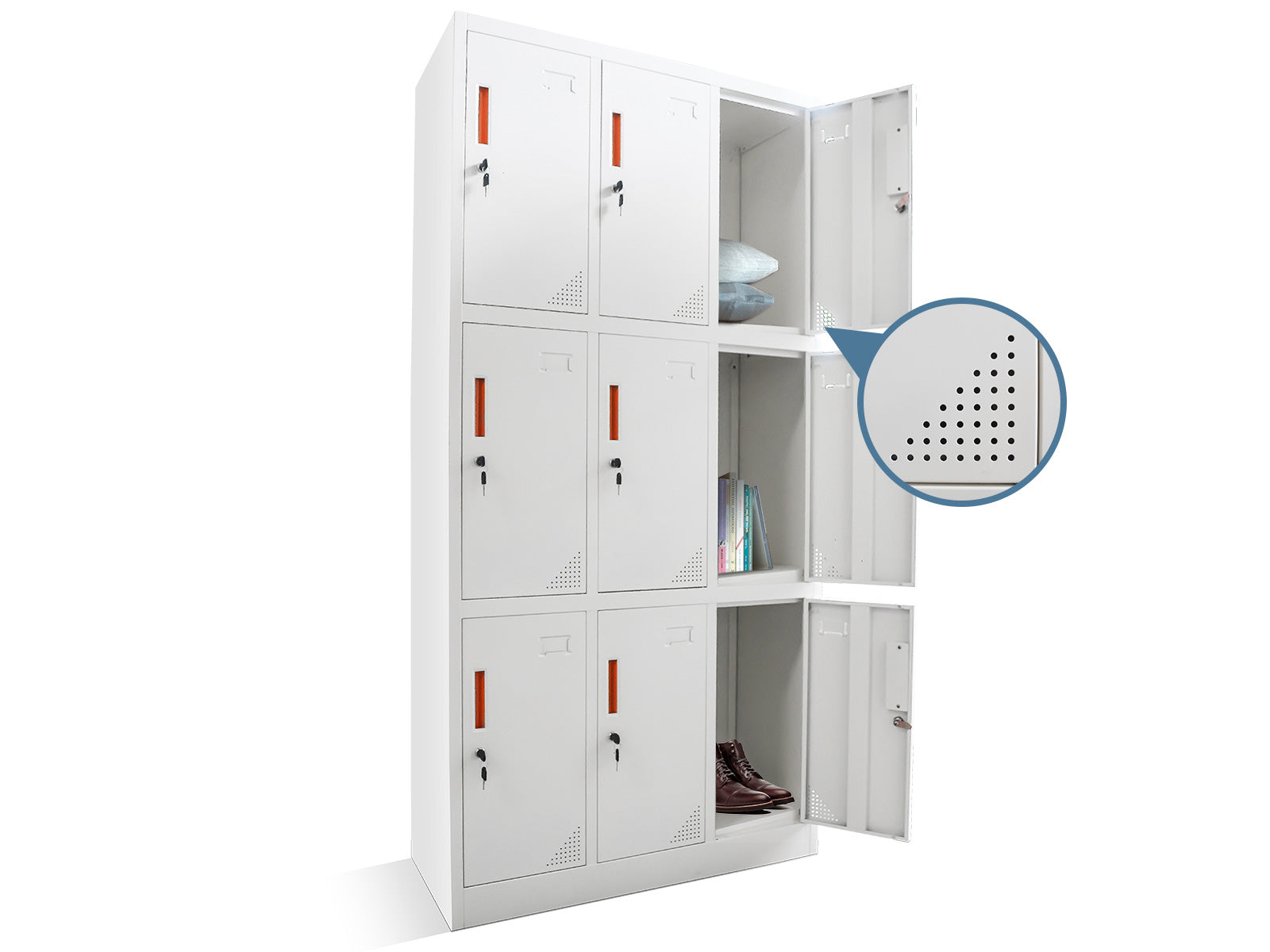 Each of the 9 lockers comes with 2 compatible keys per lock, identity label slots to name or number each locker for quick identification, as well as air vents to assure sufficient ventilation for your precious items.