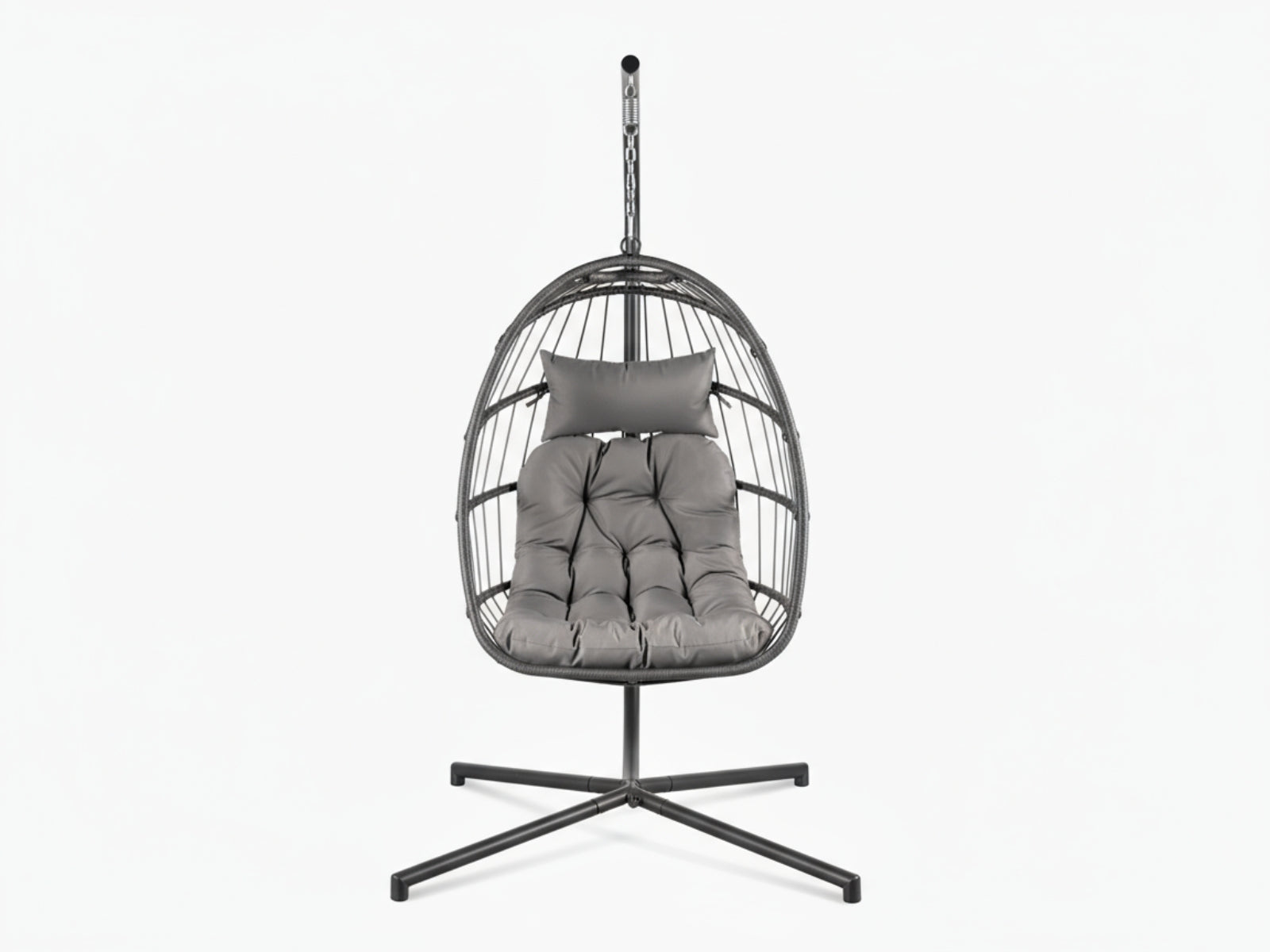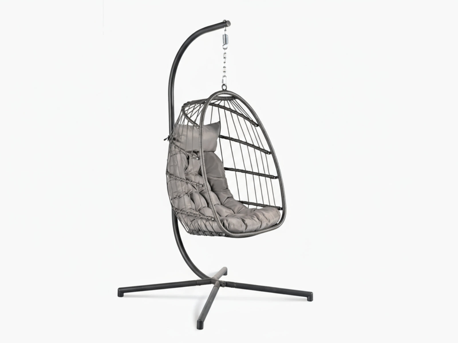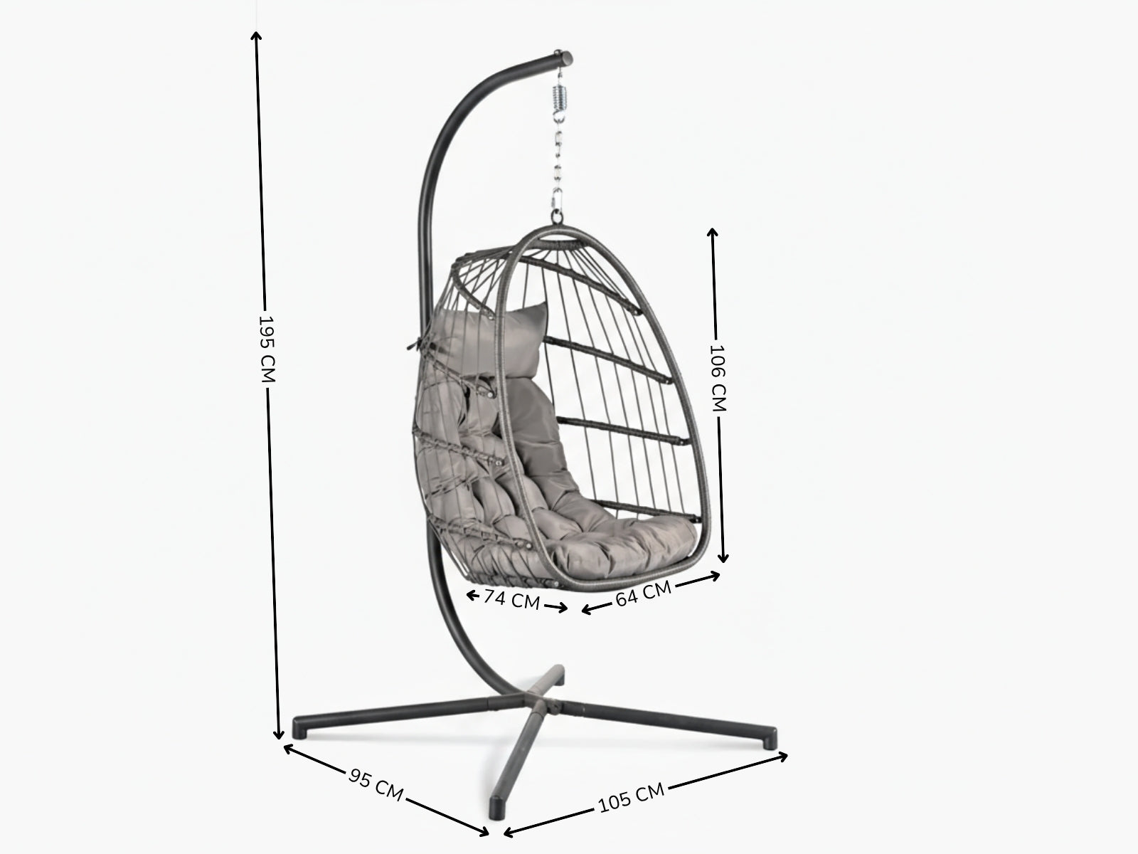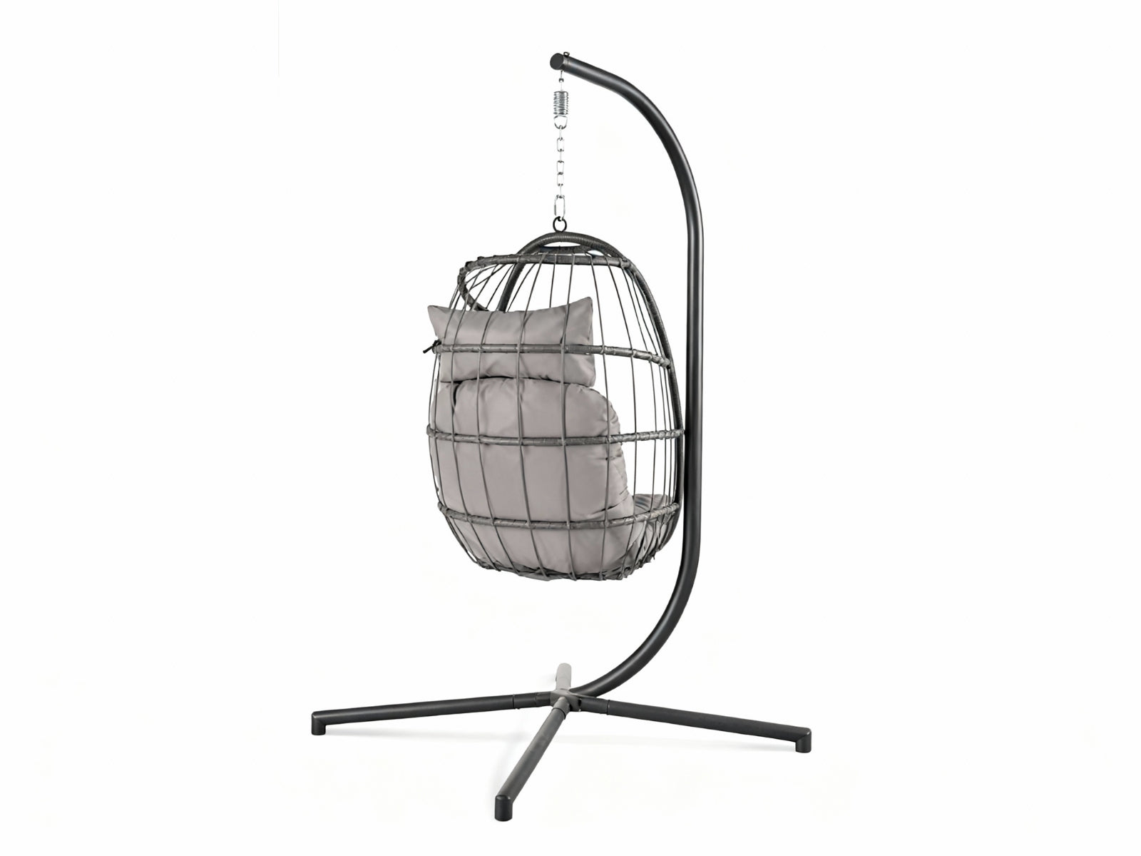 Unwind in comfort with the Pigato Single Swing Egg Chair, a perfect retreat for one. Crafted with a durable powder-coated steel frame and handwoven PE rattan. This chair combines strength and style. The foldable pod design saves space, while the soft seat and headrest cushions ensure lasting comfort. Weather-resistant materials make it ideal for indoor or outdoor use. Perfect for relaxing on your patio, balcony, or garden.