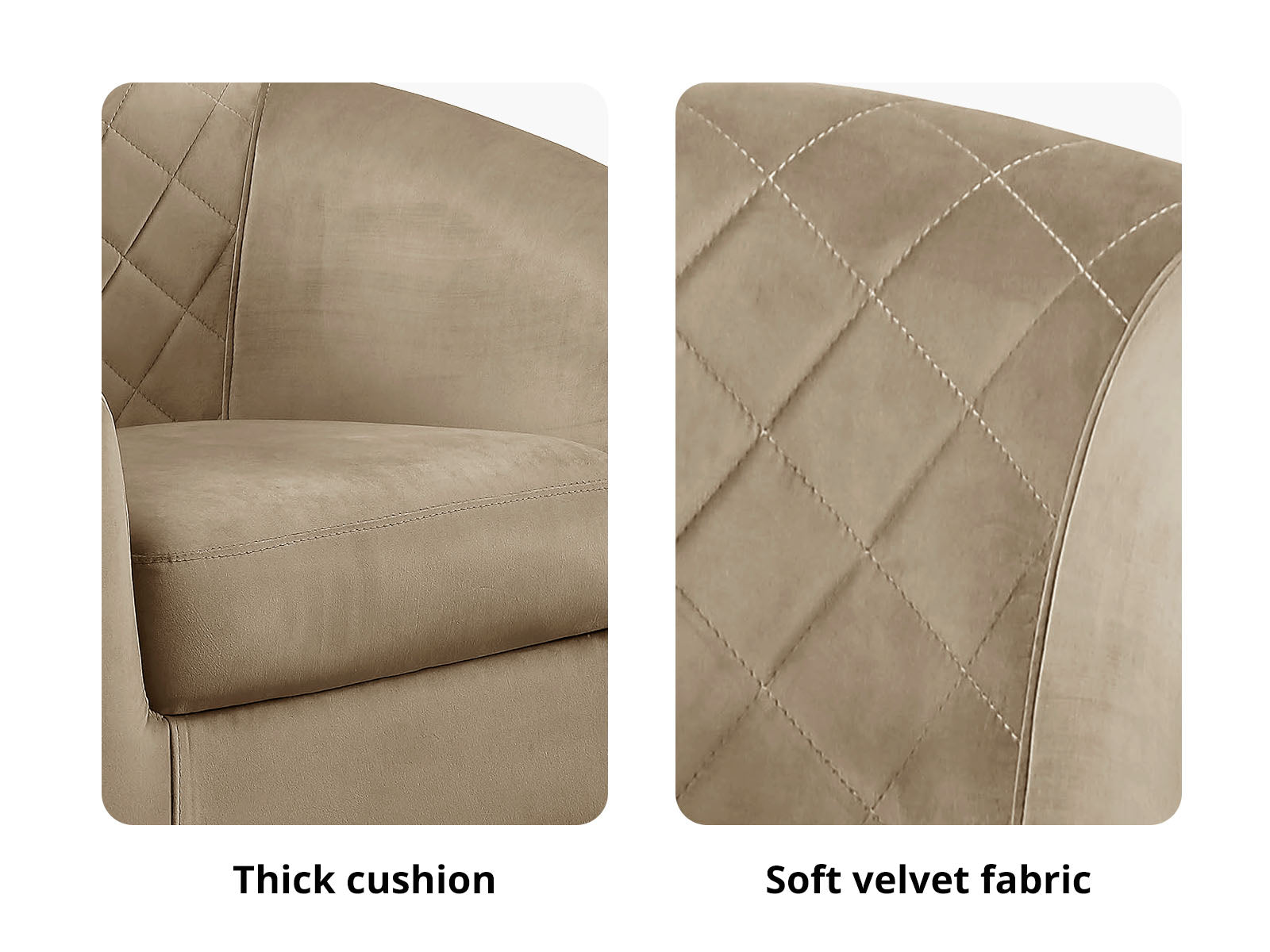 An iconic design that will stand the test of time and taste. The Cambia Tub Chair with Ottoman is the perfect ensemble to incorporate some grandeur to your home. With its meticulous craftsmanship, the armchair is wrapped with soft velvet with rich high-resilience foam padding for comfort. The barrel back hugs your body to provide perfect support and comfort and the ottoman provides your legs with excellent support. Form and function never looked better than with our Cambia Tub Chair.