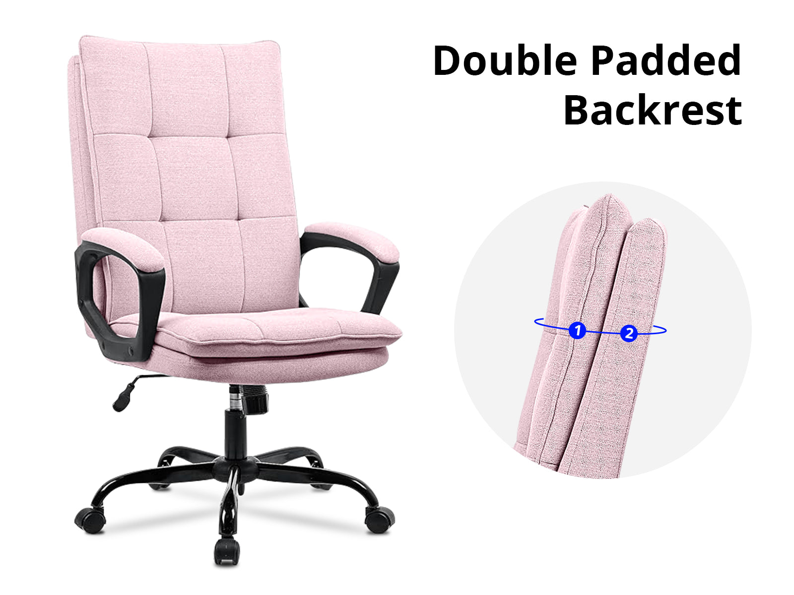 Allow our office chair to make your sitting and working experience more comfortable and productive. Our Claire Office Chair features a chrome base with easy height adjustment and tilt function, as well as 360° swivel and five durable nylon caster wheels rolling easily. It has a nicely padded, soft linen seat, back and armrests with top stitching, which you can have continuous comfort for long hours of gaming or working. With elegant lines, our chair surely will bring a touch of contemporary living to your home or office.