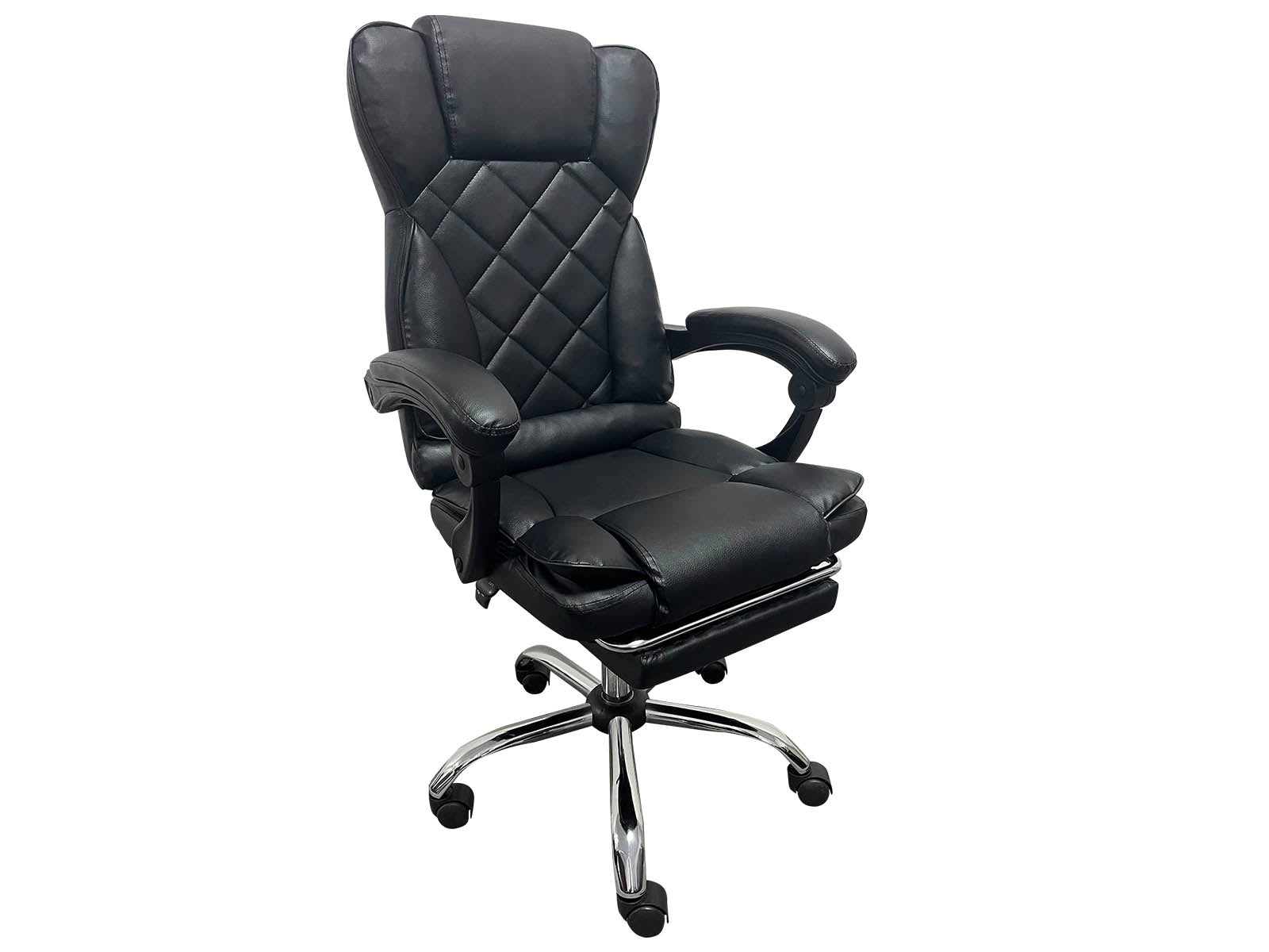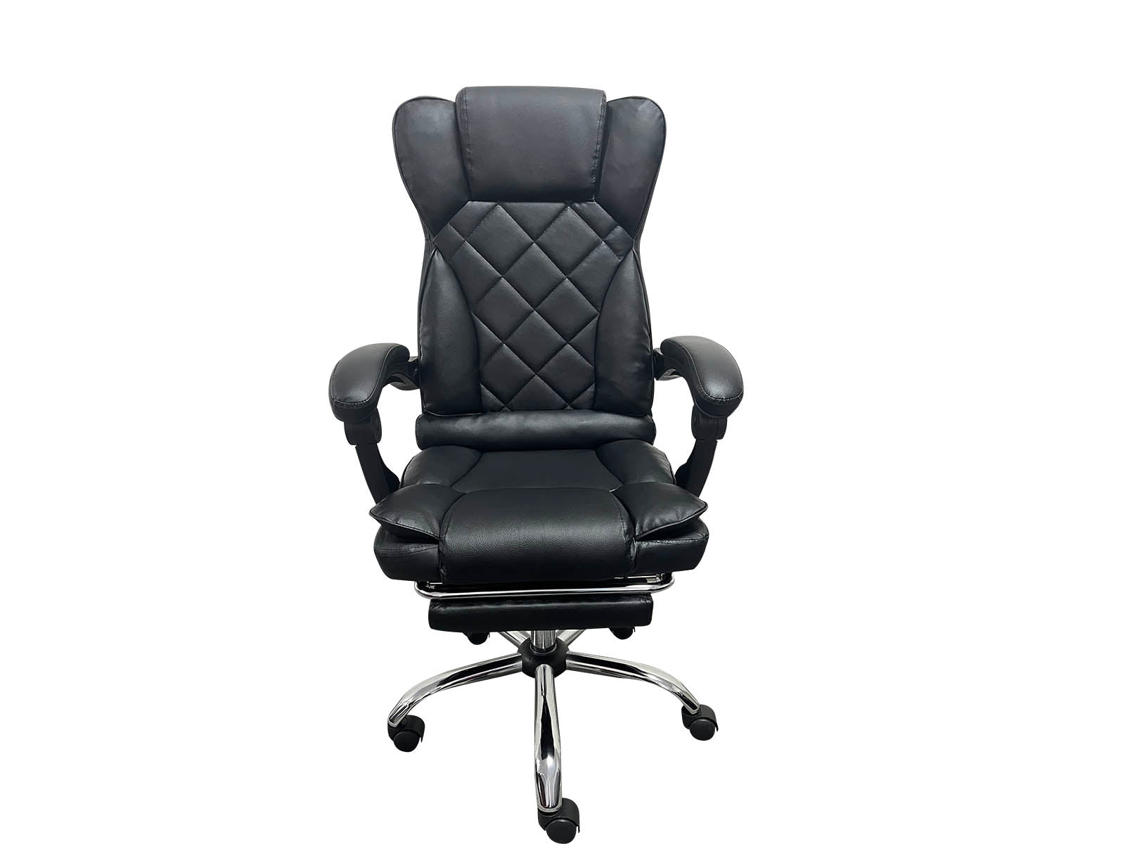 Allow our executive office chair to make your sitting and working experience more comfortable and productive. It has a nicely padded, soft PU leather seat, back, and armrests with top stitching. The backrest can be adjusted and locked at different angles to suit your activities such as working, reading, viewing videos or just resting, with a retracted footrest. 360° free swivel feature allows you to turn in direction and collaborate with your colleagues. Smooth-rolling casters mean you can take this chair anywhere for greater convenience and mobility. The sleek frame and modern design make this executive chair an elegant addition to your home office or study.