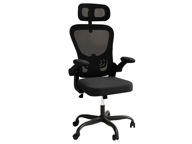 If you spend a lot of time in front of your desk, you'll need such a comfortable and functional office chair. High mesh back supports your entire back, neck and head, at the same time, bringing a cool using experience. A large, cushioned seat relieves fatigue from a long time sitting. Best of all, our desk chair is highly adaptable to your preferences. The seat, lumbar support and headrest can all be adjusted within a certain height range for maximum comfort. Armrests with foam padding are ideal for resting your arms and can be flipped up for space saving. The star base with five nylon castors allows 360° smooth mobility. To add more fun, users can adjust the tilted angle of the backrest to enjoy rocking back and forth. Start a productive but relaxing day from now on!