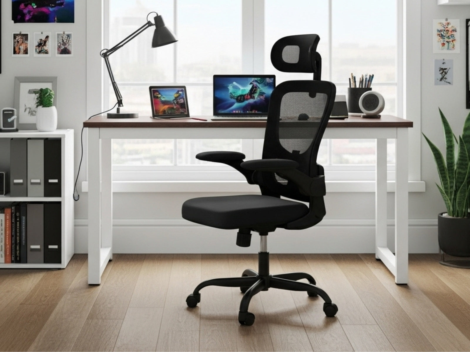 If you spend a lot of time in front of your desk, you'll need such a comfortable and functional office chair. High mesh back supports your entire back, neck and head, at the same time, bringing a cool using experience. A large, cushioned seat relieves fatigue from a long time sitting. Best of all, our desk chair is highly adaptable to your preferences. The seat, lumbar support and headrest can all be adjusted within a certain height range for maximum comfort. Armrests with foam padding are ideal for resting your arms and can be flipped up for space saving. The star base with five nylon castors allows 360° smooth mobility. To add more fun, users can adjust the tilted angle of the backrest to enjoy rocking back and forth. Start a productive but relaxing day from now on!