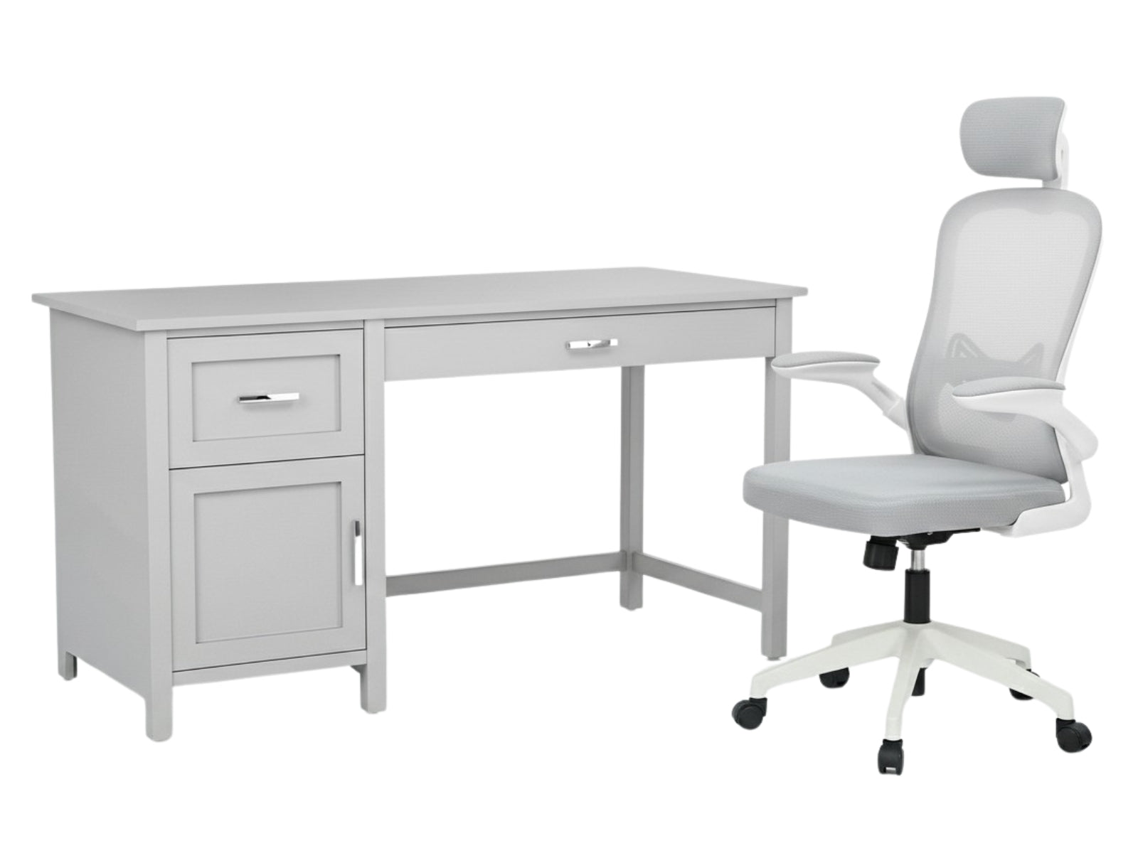 Home Office Desk with Storage Grey & Ergo Office Chair 094 grey and white (Combo)