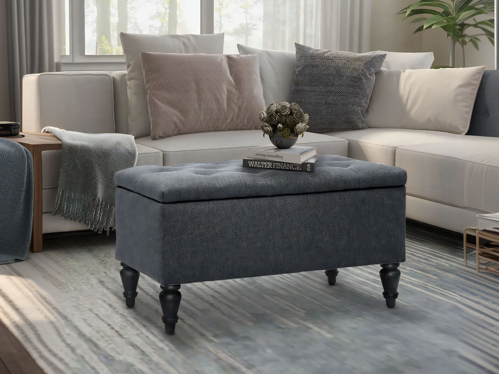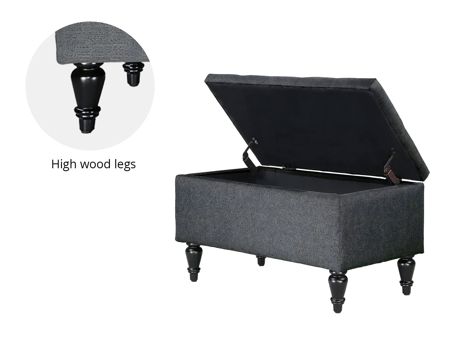 With an elegantly tufted seat and finished in elegant linen, our ottoman is simply luxurious to rest on and adds a plush touch to any home. But more than that, it also provides neat storage space for your home essentials. Blankets, throws, pillows, magazines, and even toys can be stowed away in a discreet, easy-to-access manner. Made of quality material, the ottoman is strong and sturdy and stands up to durable use. The lift-up top enables easy access while its robust metal hinges ensure that it will stay open and not falter easily. Whether you are using the ottoman as extra lounge seating, bedroom décor, or your favorite footrest, our multifunctional and versatile ottoman matches form with function perfectly and elegantly.