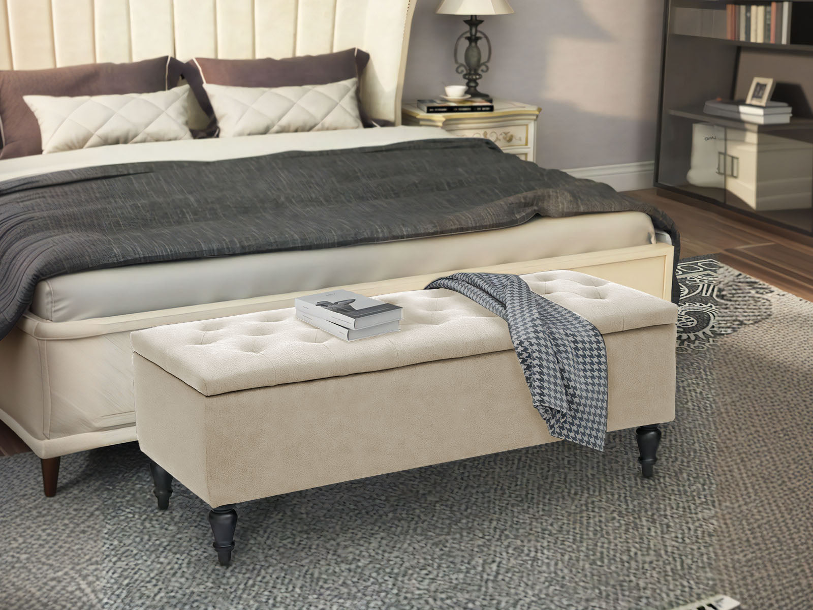 With an elegantly tufted seat and finished in elegant linen, our ottoman is simply luxurious to rest on and adds a plush touch to any home. But more than that, it also provides neat storage space for your home essentials. Blankets, throws, pillows, magazines, and even toys can be stowed away in a discreet, easy-to-access manner. Made of quality material, the ottoman is strong and sturdy and stands up to durable use. The lift-up top enables easy access while its robust metal hinges ensure that it will stay open and not falter easily. Whether you are using the ottoman as extra lounge seating, bedroom décor, or your favorite footrest, our multifunctional and versatile ottoman matches form with function perfectly and elegantly.