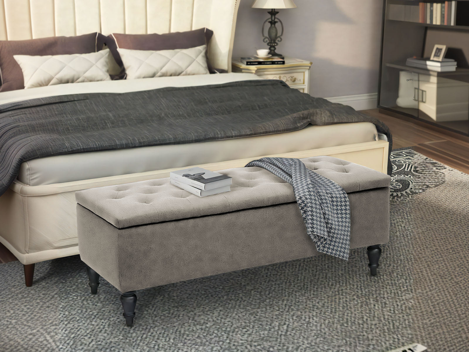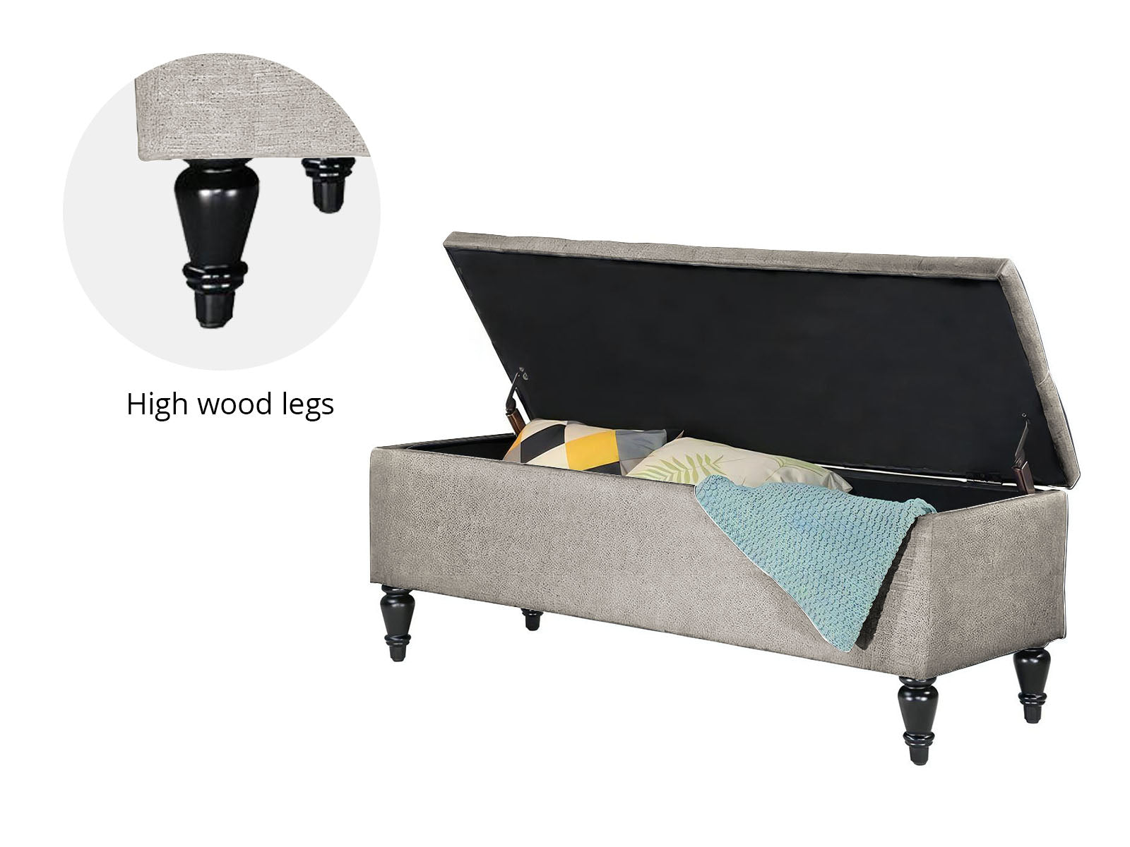 With an elegantly tufted seat and finished in elegant linen, our ottoman is simply luxurious to rest on and adds a plush touch to any home. But more than that, it also provides neat storage space for your home essentials. Blankets, throws, pillows, magazines, and even toys can be stowed away in a discreet, easy-to-access manner. Made of quality material, the ottoman is strong and sturdy and stands up to durable use. The lift-up top enables easy access while its robust metal hinges ensure that it will stay open and not falter easily. Whether you are using the ottoman as extra lounge seating, bedroom décor, or your favorite footrest, our multifunctional and versatile ottoman matches form with function perfectly and elegantly.