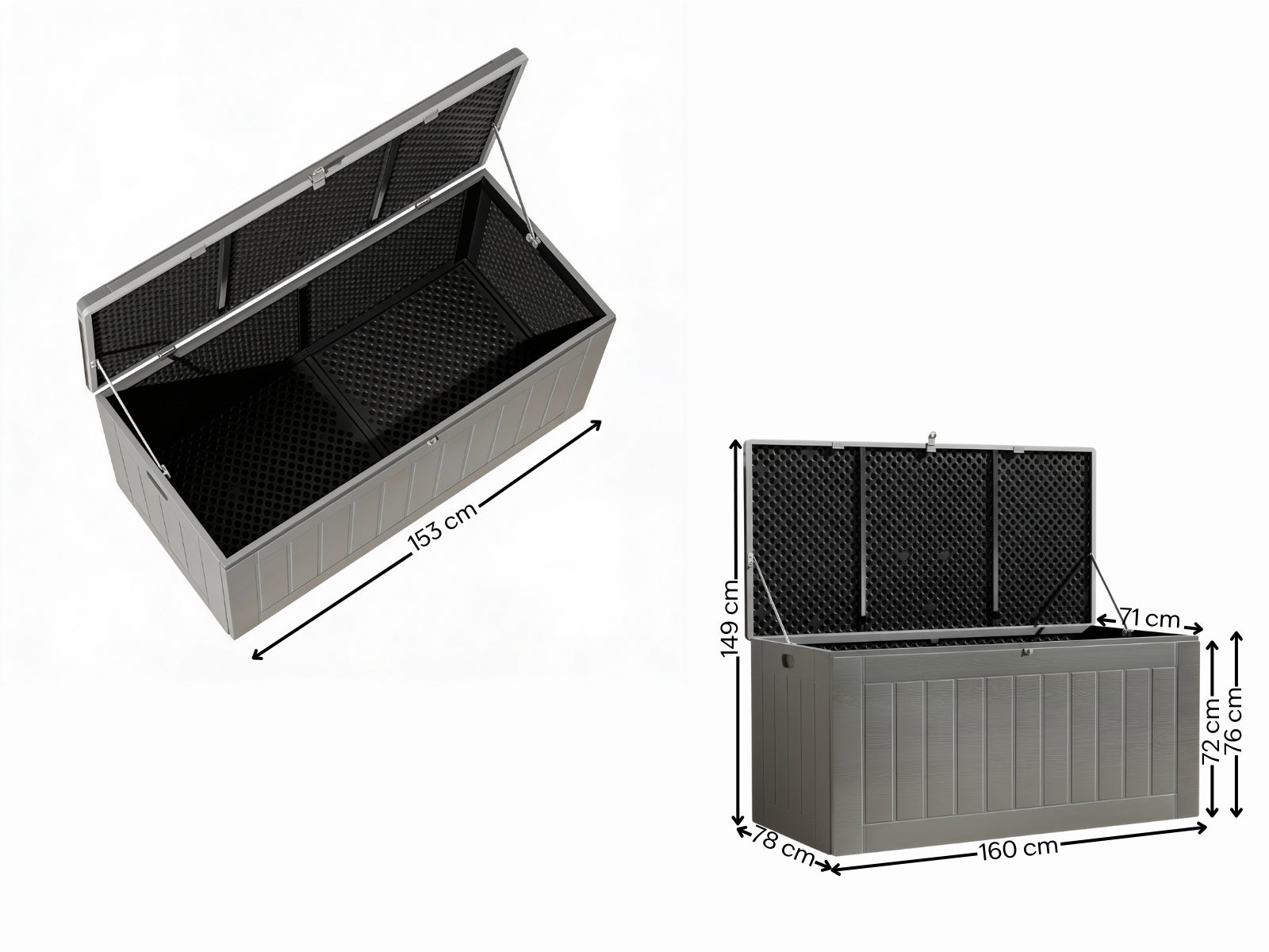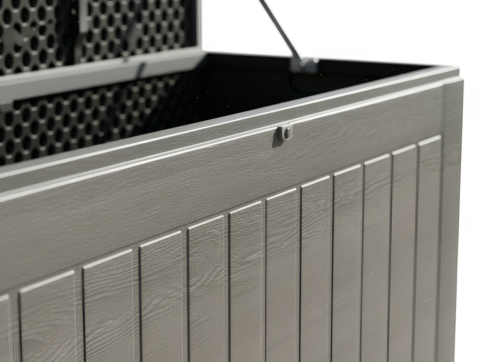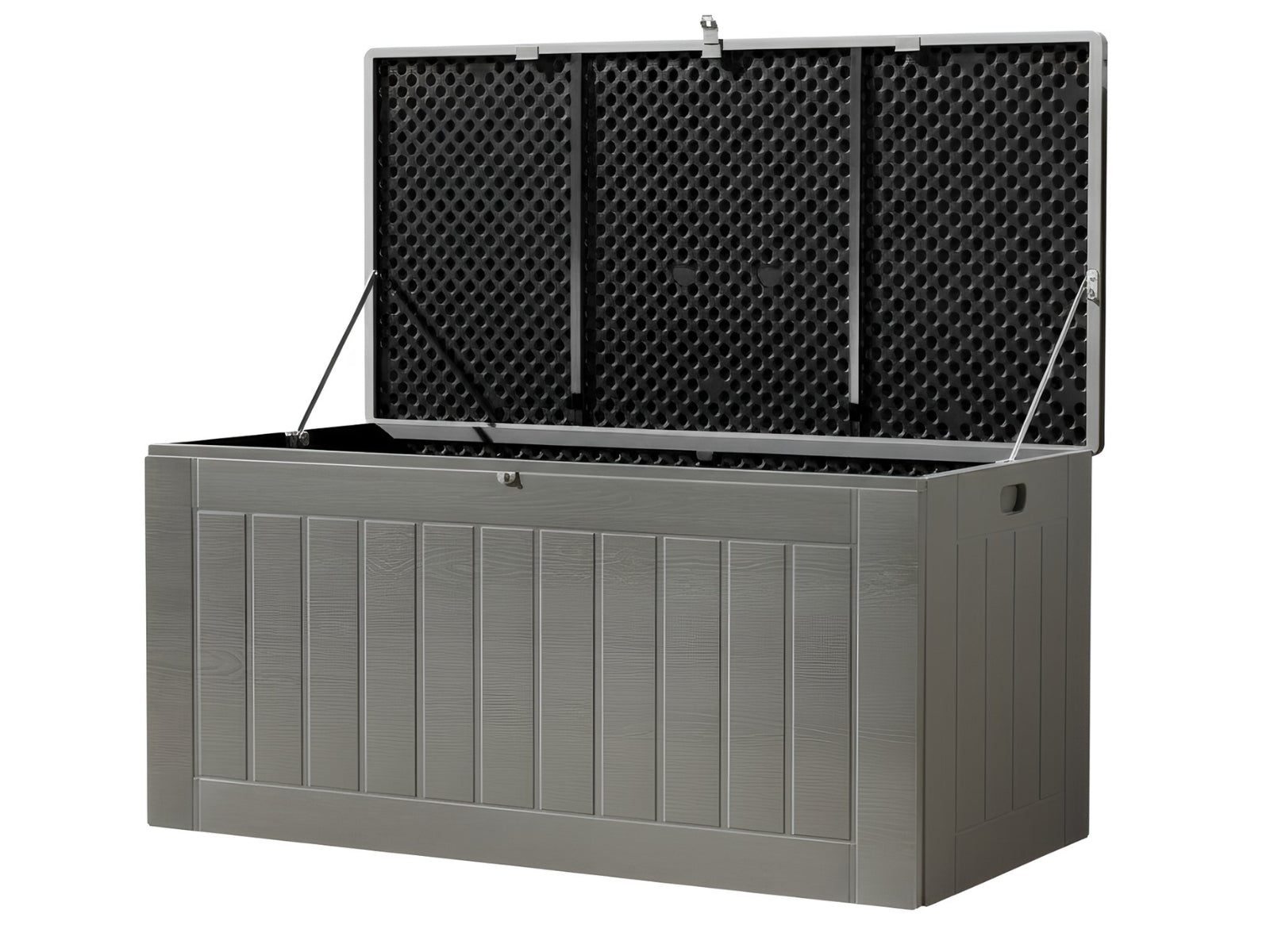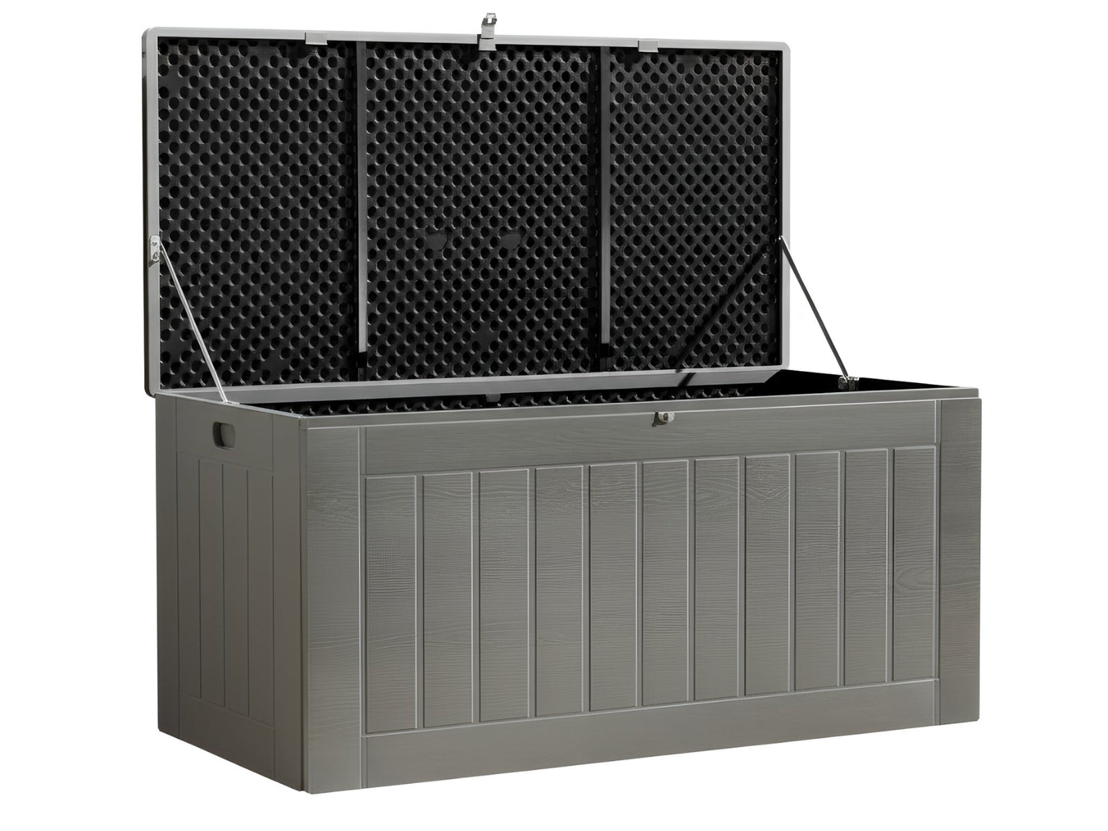 Stylish and modern looking, this Outdoor Storage Box is just perfect for storage outdoors and indoors. With a 830L storage capacity, the box is totally practical in every way. Made of durable and Weather-resistant PP material, the box does not rust and can stand up to robust use with ease. It comes with an aluminium hinge and an inner lid stopper for hassle-free use. Better still, the storage box can also double up as a bench for casual seating anytime.