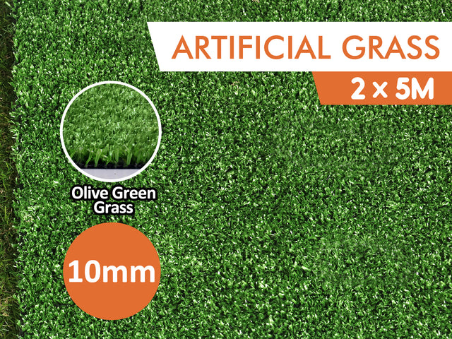 Olive Green 10 mm Artificial Grass - 2x5 m Roll
