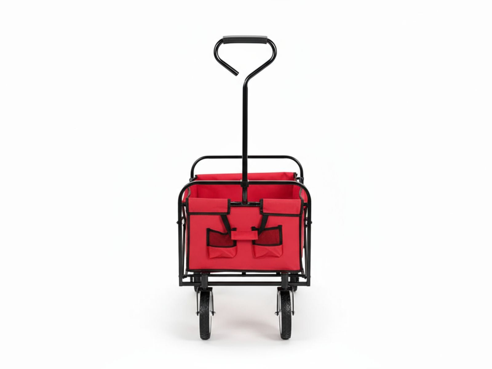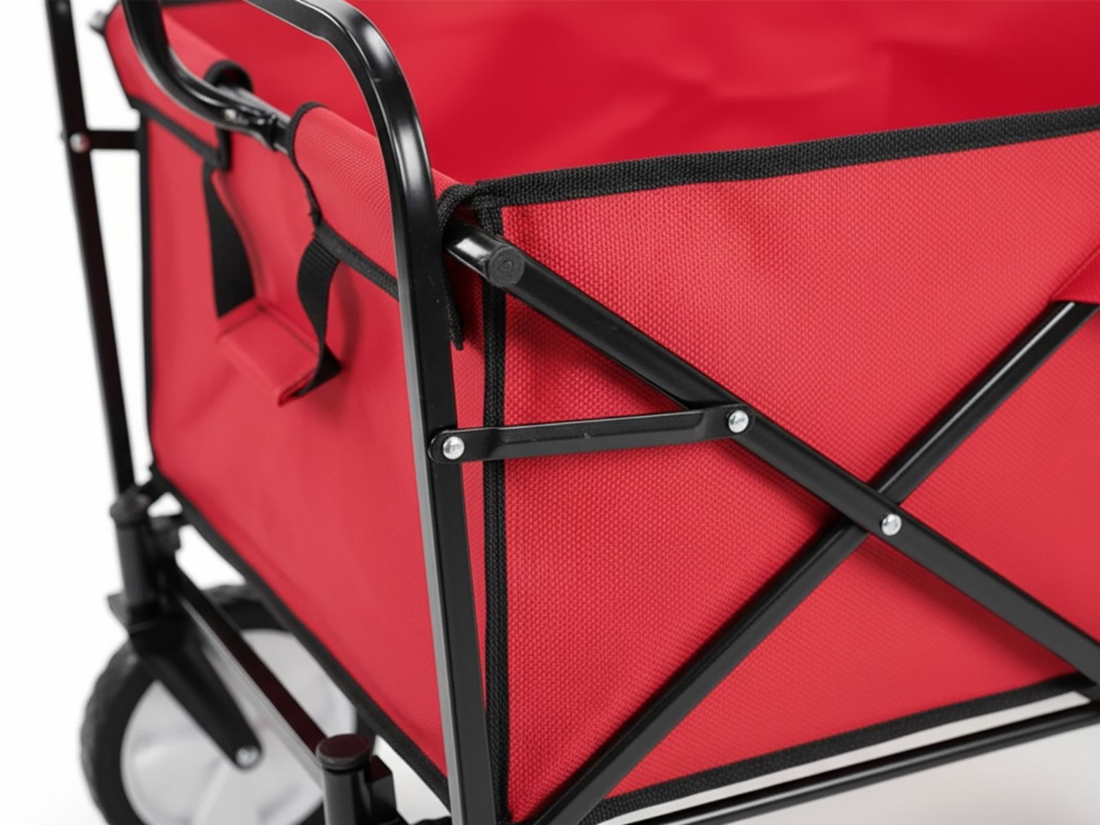 The folding wagon makes your outdoor activities become so convenient. No matter you are going to play sport game, do gardening or go camping, the large storage space with extra bags can carry all you need at one time. Made with a sturdy steel frame, durable polyester fabric and multi-directional wheels, it provides you with a long-lasting and tough solution when it comes to transporting items from one place to the next. Not least, folding down in just seconds, it can easily be stored in the back of the car or packed away in the garage when not in use. Let’s enjoy your holiday with our folding wagon.