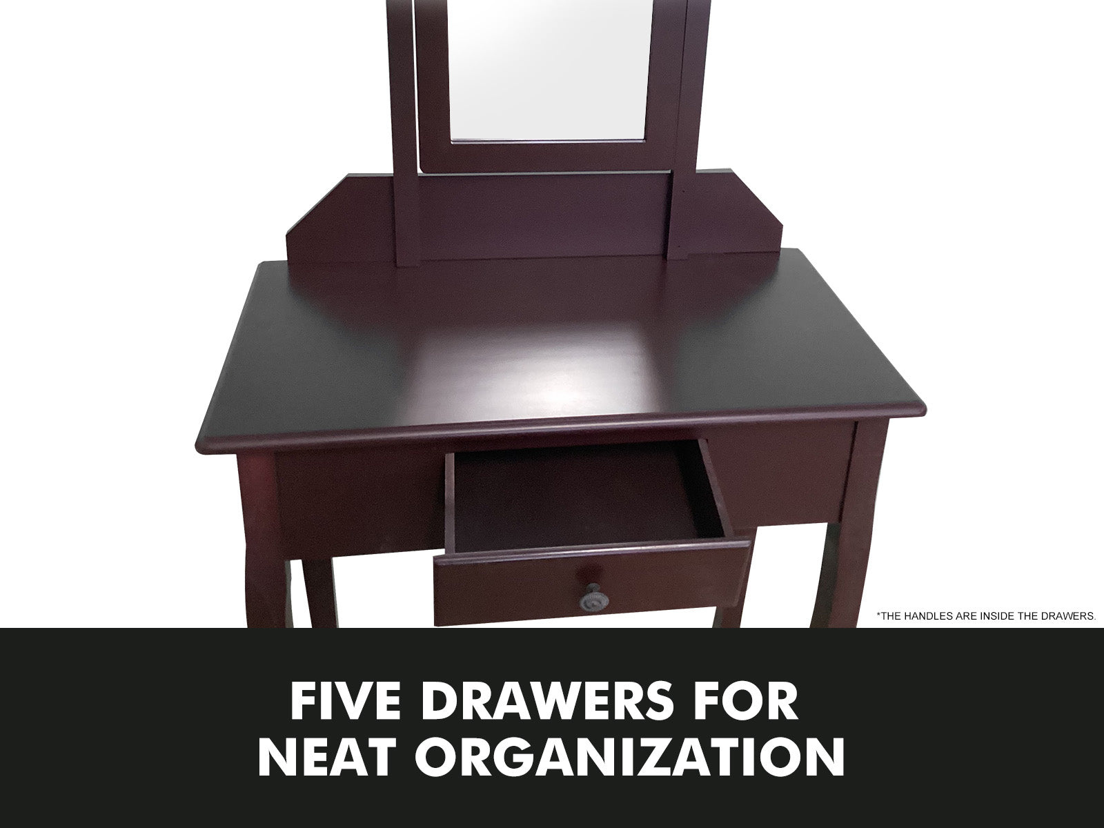 Vanity Table Set | Brown Finish | Rotatable Mirror & Cushioned Stool