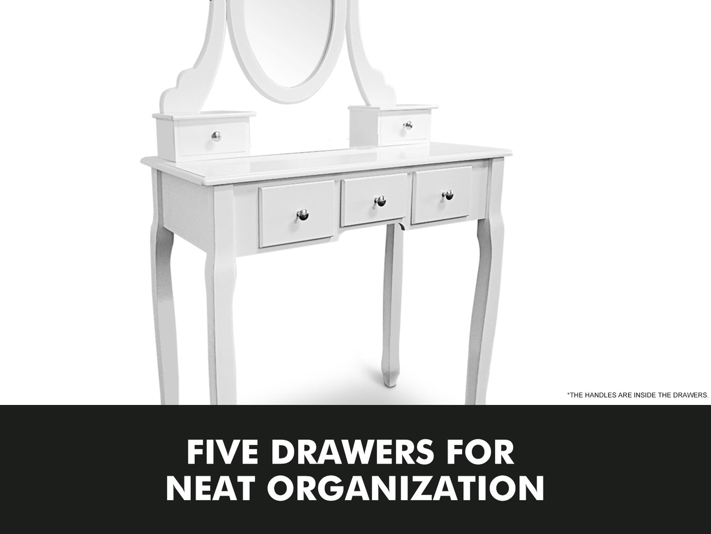 Five compact drawers for organized storage