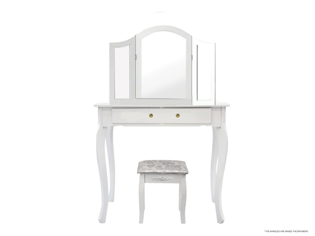 1 x 3-Mirror Dressing Table Set White 79 cm (flat-packed in box)