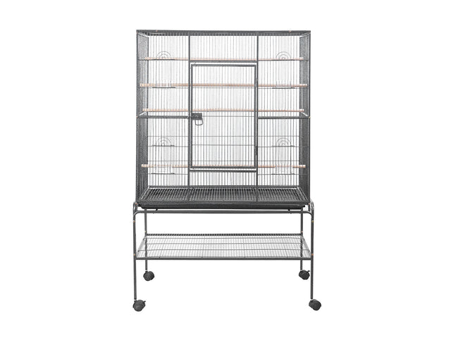 Iron Bird Cage | Black | With Wheels & Storage Shelf