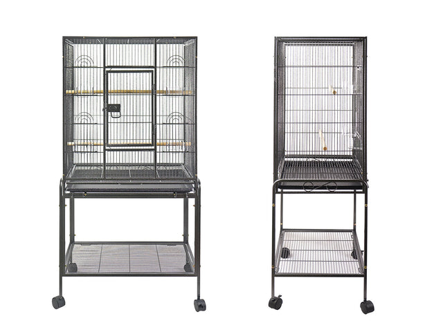 Iron Bird Cage | Black | With Wheels & Storage Shelf