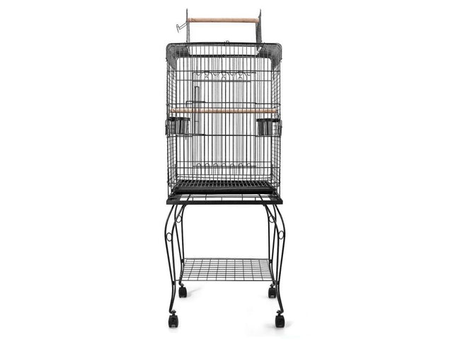Parrot & Bird Cage | Black | Castor Wheels & Perches