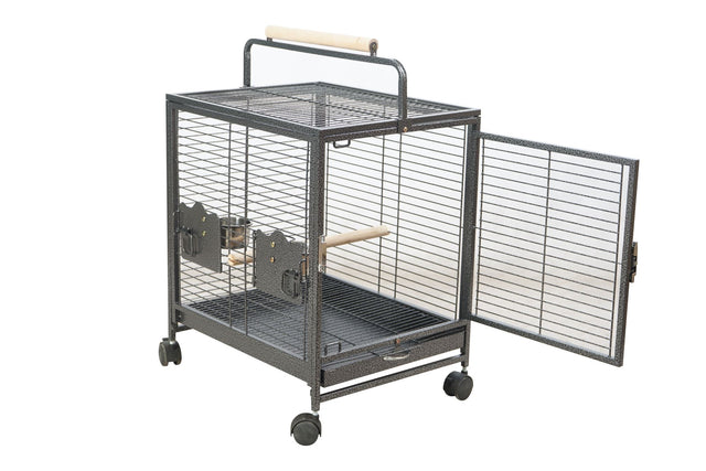 This portable bird cage is ideal for short-term use, emergencies, and traveling. Its lightweight design makes it easy to transport while keeping your bird safe and comfortable. The bird cage features a slide-out tray for easy cleaning, a lift-up feeding gate with bowls for convenient feeding, and a wooden perch inside for comfortable relaxing. Better still, the cage is supported by smooth castor wheels, making moving hassle-free. Best of all, this portable bird carrier is a fantastic choice.