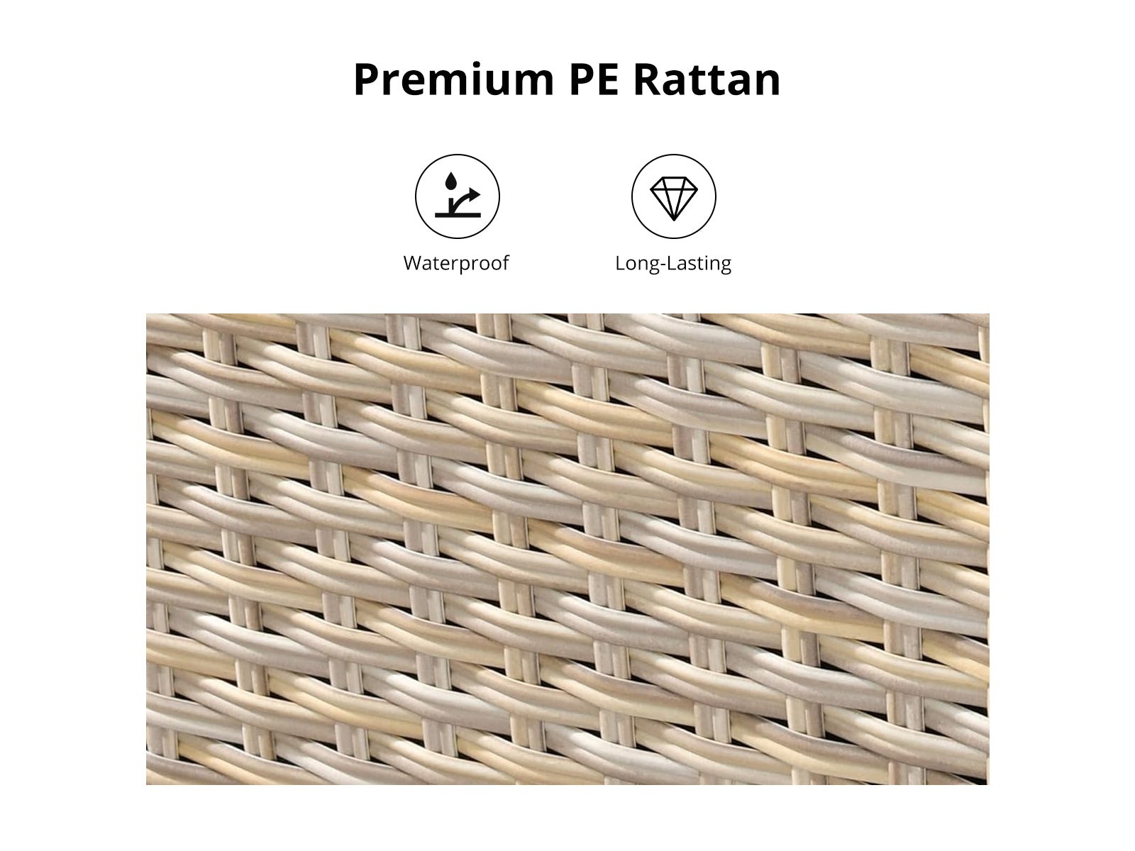 This Aphrodite Patio Chair will add a contemporary flair to your outdoor space. No matter add them to your outdoor dining set or use as standalone pieces on your patio, balcony, deck or poolside. With its PE wicker handiwork and heavy-duty metal frame, the stylish outdoor set is made to last. The biggest highlight of this set is that it also provides a seat for your beloved pet, right below the sofa, with soft cushions. Available in various colors to match your outdoor décor, don't miss out on this exceptional set.
