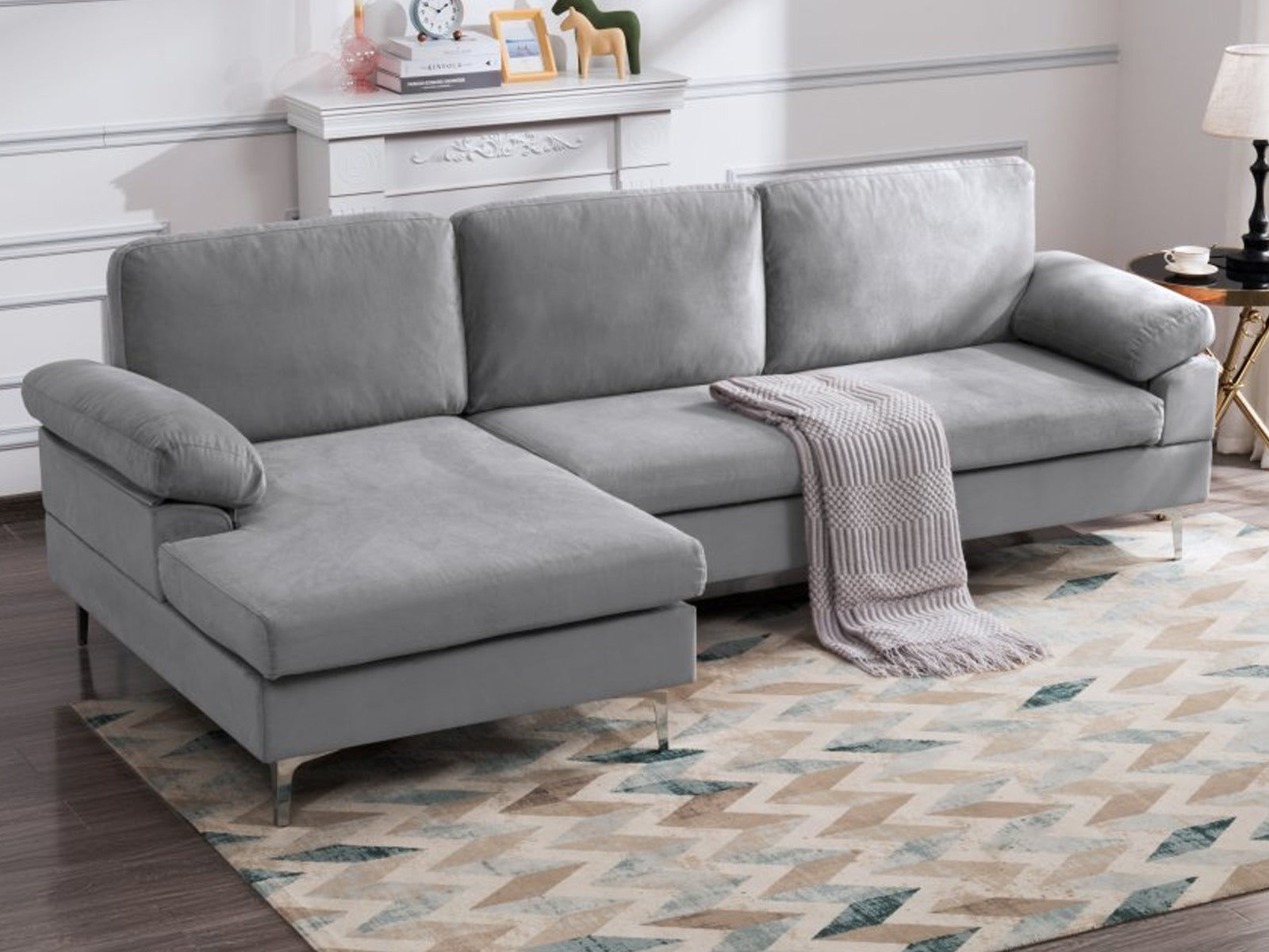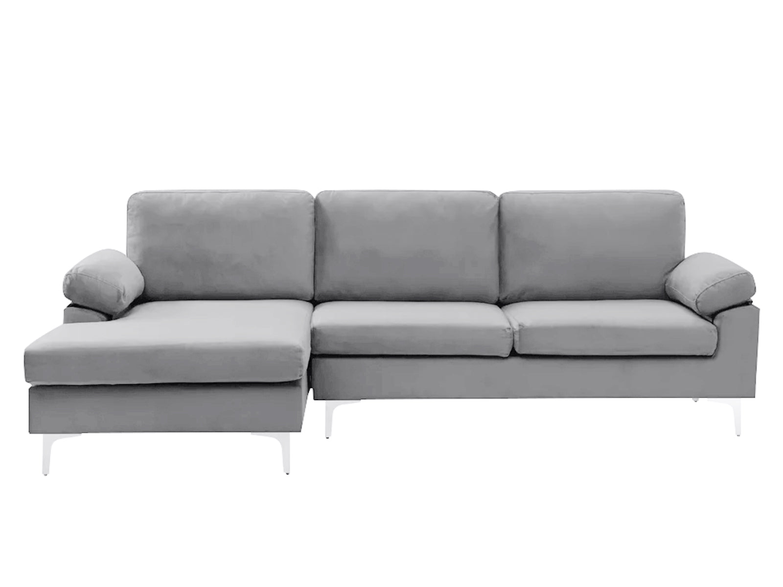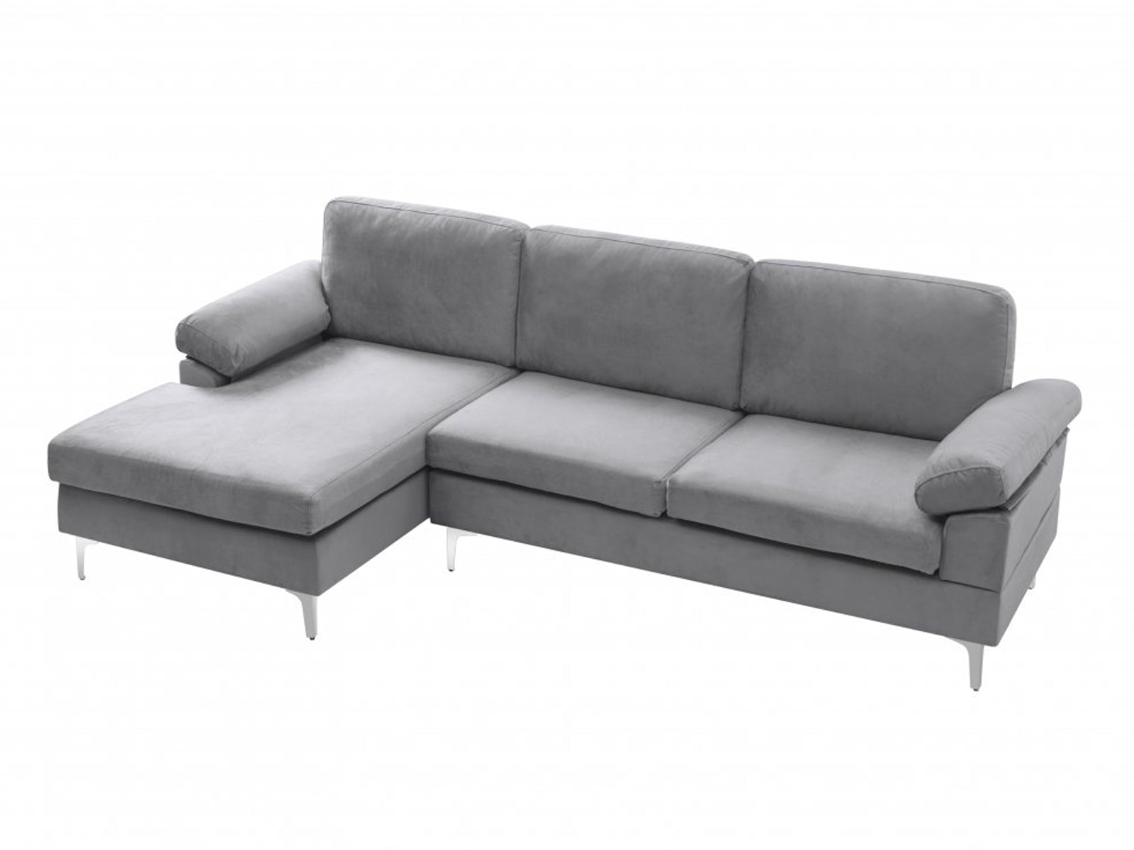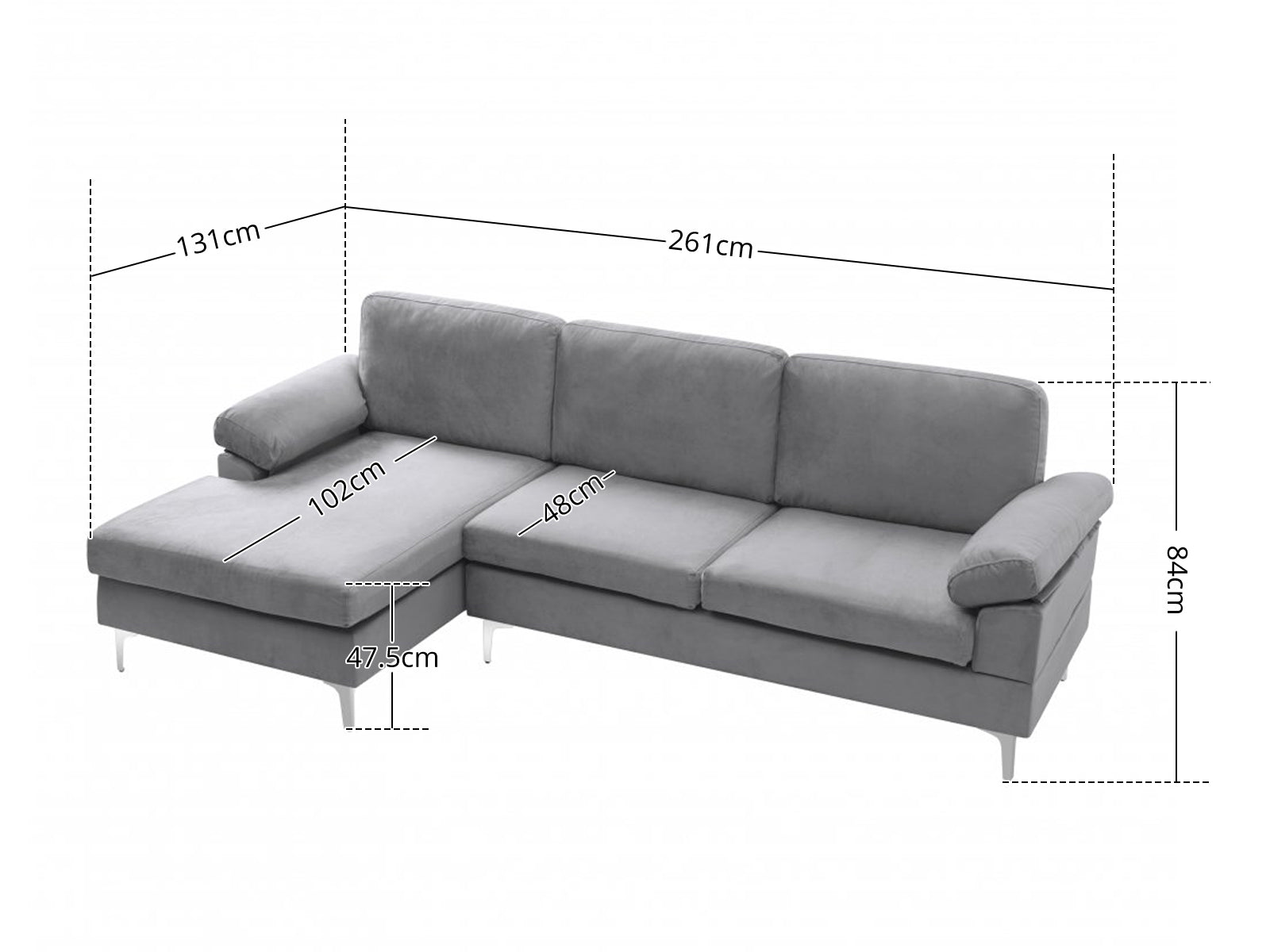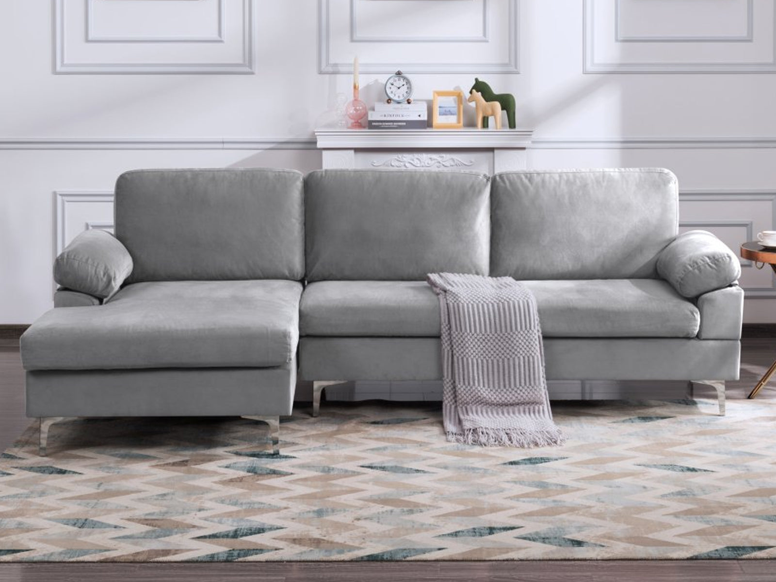 DS Pauline Velvet Sectional Sofa with Left Chaise Grey