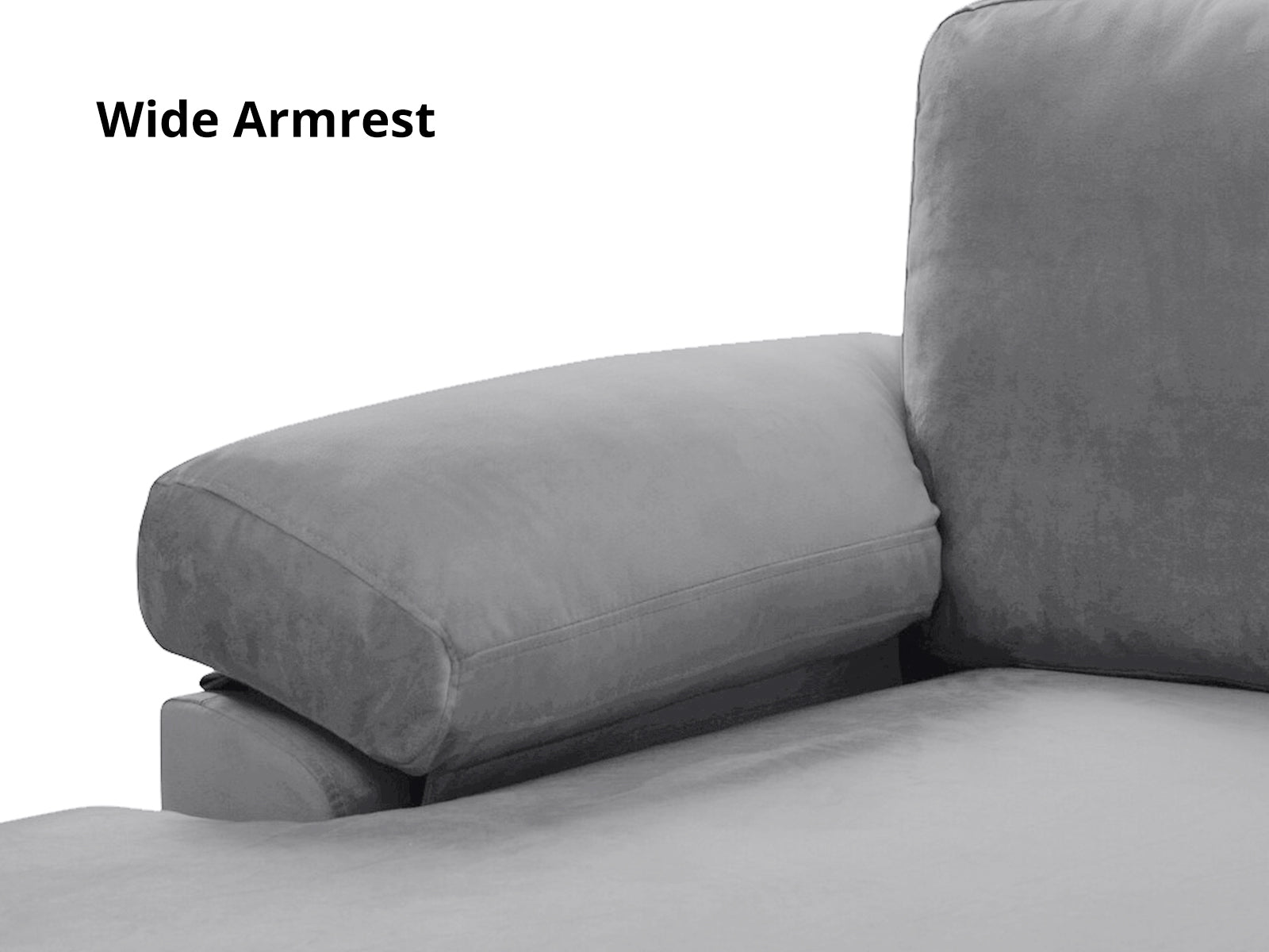 This Pauline Velvet Sectional Sofa is a perfect place to lounge, watch TV, or relax with family and friends. Constructed with a solid wood frame, filled with premium foams, and upholstered in soft velvet fabric, our sofa is sturdy in every way. The seats are comfortable with soft cushions and ample support for your back, too. This inviting design envelops you in a cozy embrace, making you feel instantly at ease and comfortable. Suitable for a variety of spaces and styles, this sofa offers you the ultimate experience and helps your body to fully relax. It will give your home the renaissance it deserves.