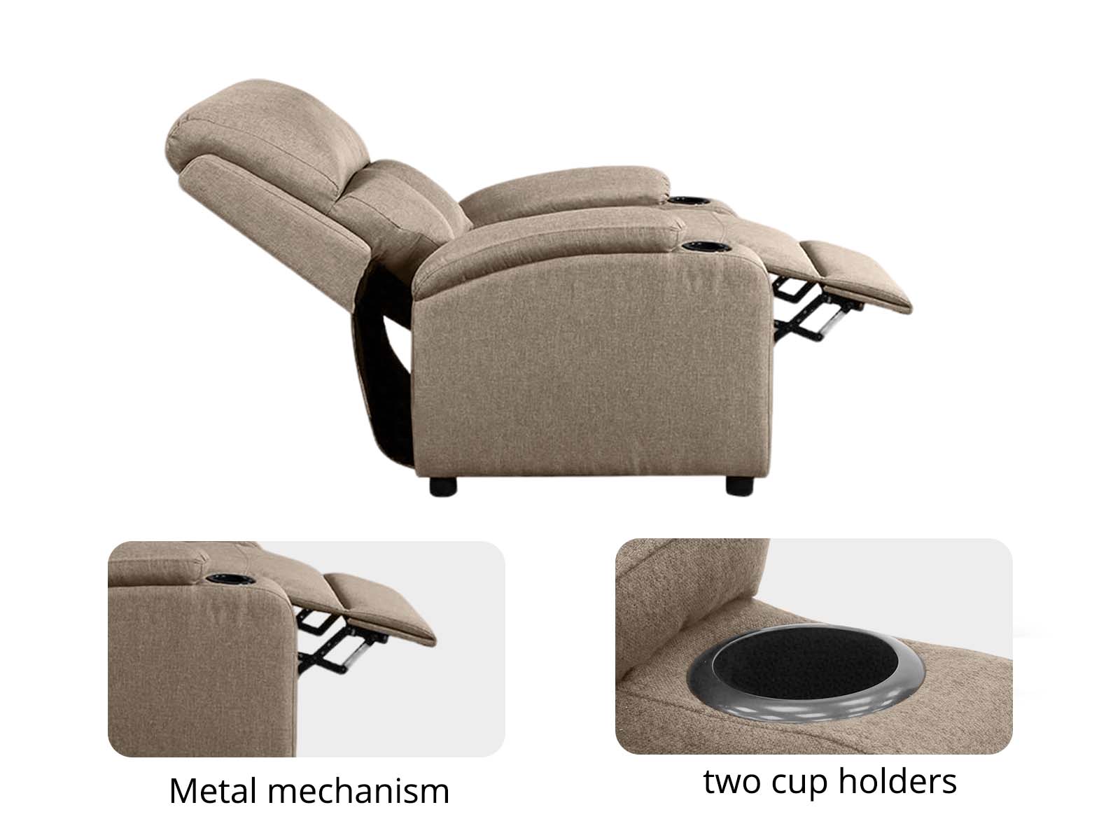 Take a seat and recline in seconds in this smooth and stylish Push Back Recliner Chair. Thick sponge padding and lightweight premium faux linen-touch fabric ensure long-lasting top-notch relaxation. Sink Into luxury overstuffed cushions with high-density foam offer cloud-like comfort, making it ideal for recliner chairs in the living room or bedroom. Convenience at two cup holders keeps everything within reach. Whether you're relaxing after work, watching a movie, or taking a nap, Zola Push Back Recliner Chair ensures every moment feels like home.