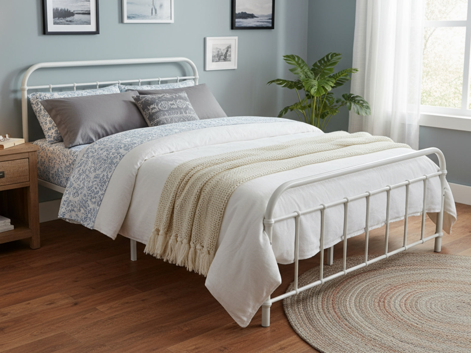 Queen Size Bed Frame | White Finish | Powder-coated Metal