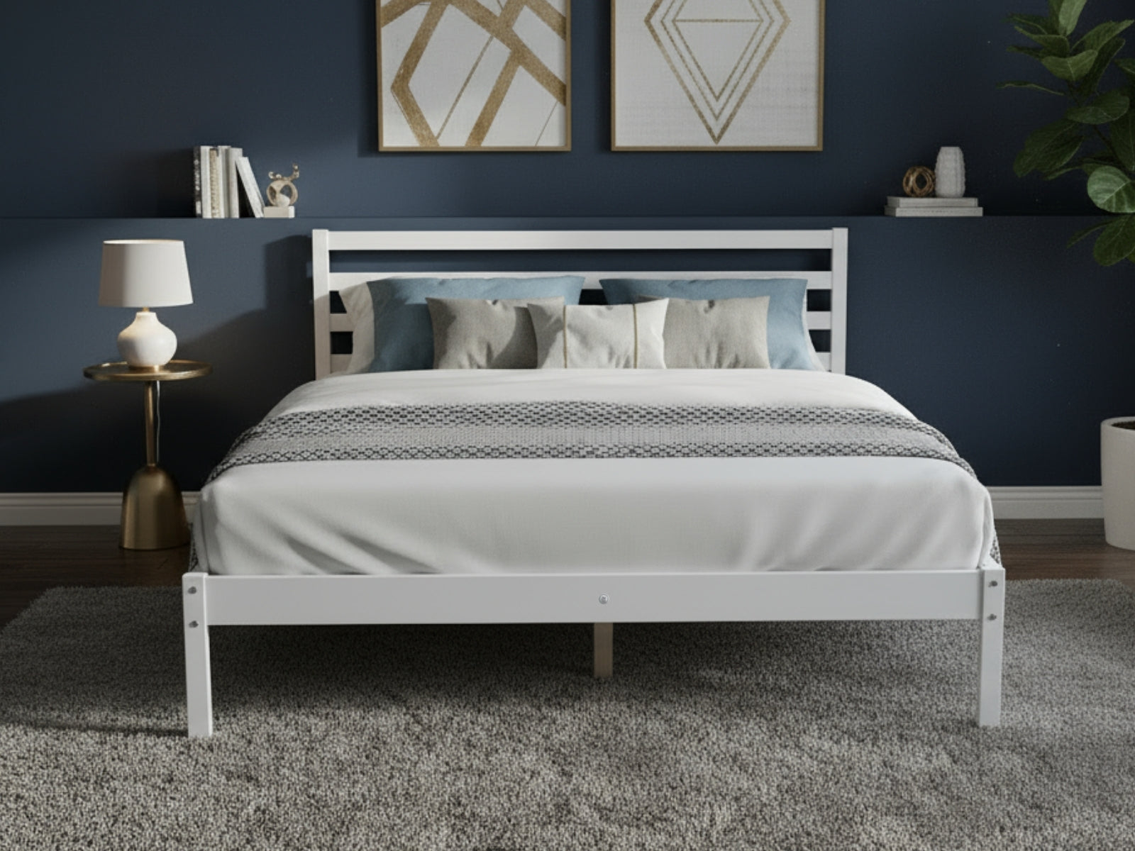 Queen Bed Frame | White Finish | Sturdy Slatted Base for Support