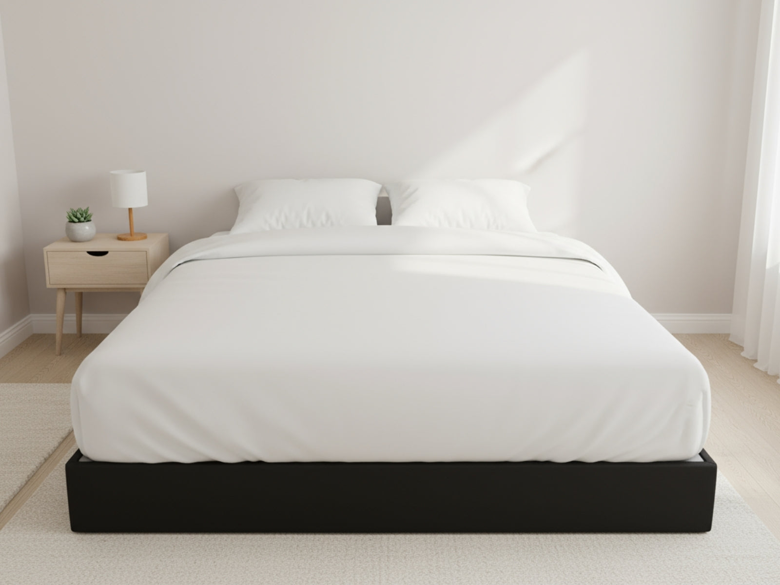 Queen Bed Base | Black Metal Frame | Sturdy Design with Cover