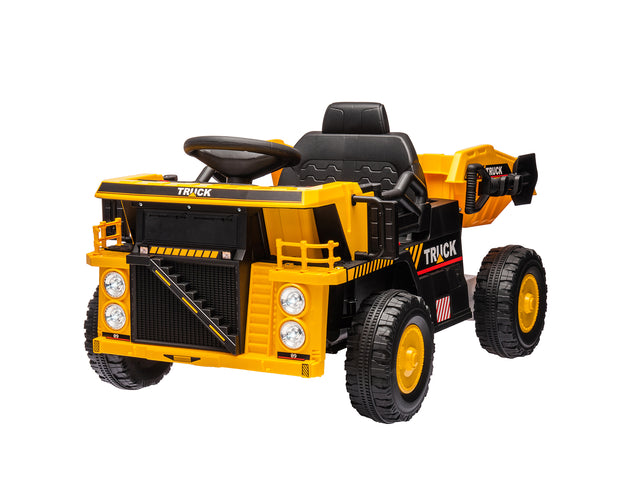 Not just an ordinary ride, but a fun and 12 Volt Dump Truck Ride-on toy! Give your kids an experience that are different and full of excitement. Imagine the look on your child's face as they put the pedal to the metal in the coolest toy on the block! This top quality ride-on has absolutely everything a child could want. It boasts a suspension system, engine sounds, forward and reverse motion, horn and headlights. When the foot pedal is pressed the twin motors with SmoothStart technology offer safe acceleration.With the addition of a shovel,their imaginations can soar. There's even a lever for kids to control the lifting of the dumping bed!