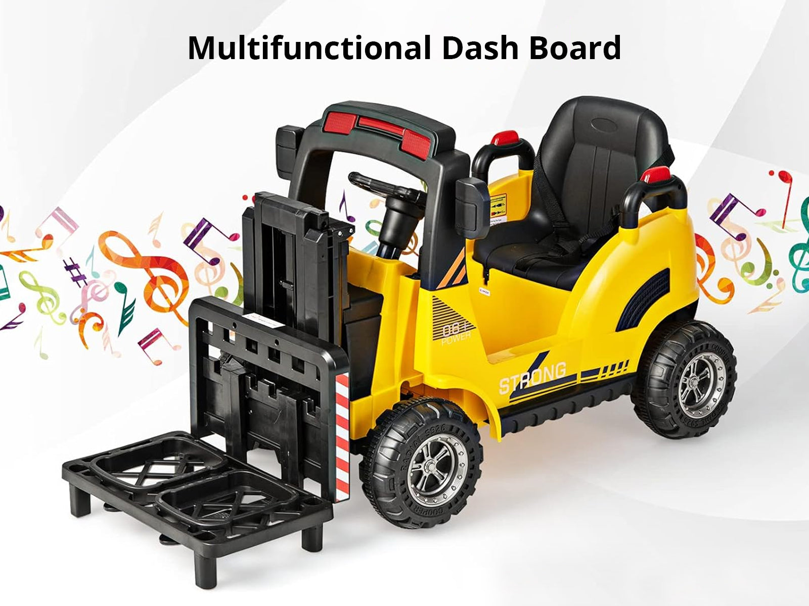 Our ride on forklift give your kids an experience that are different and full of excitement. The steering wheel and acceleration pedal to control the forward and reverse movement give your child control and a realistic driving experience.
