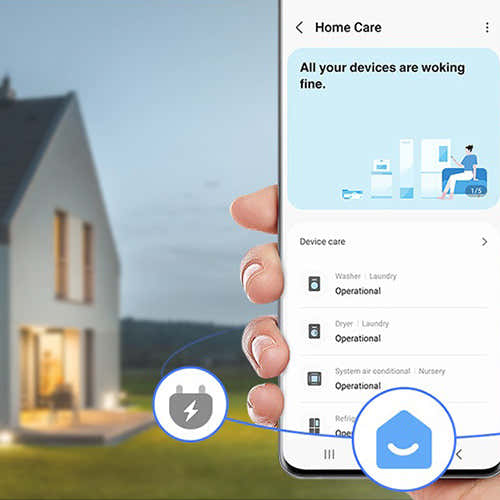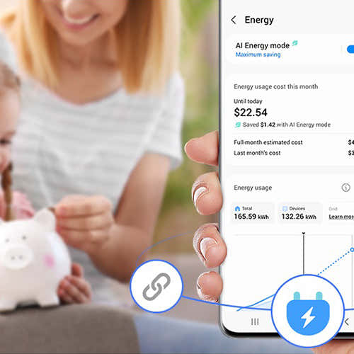 Manage your household’s energy use anytime. SmartThings Energy* provides helpful energy efficiency tips. It also lets you monitor the energy consumption of smart appliances** in real time and compare it to the previous month. And it alerts you if your monthly targets are likely to be exceeded.