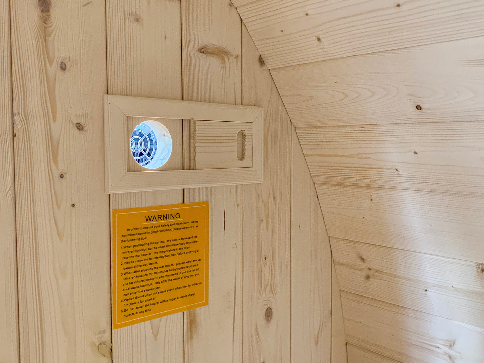 Crafted in the traditional sauna material of spruce, it brings you the soft touch of spruce wood and its light color is in harmony with nature. The spacious interior is good for 4 people comfortably. Our barrel sauna is powered by a Finnish-made 4.5Kw Harvia Vega electric sauna heater with 20KGS stone.